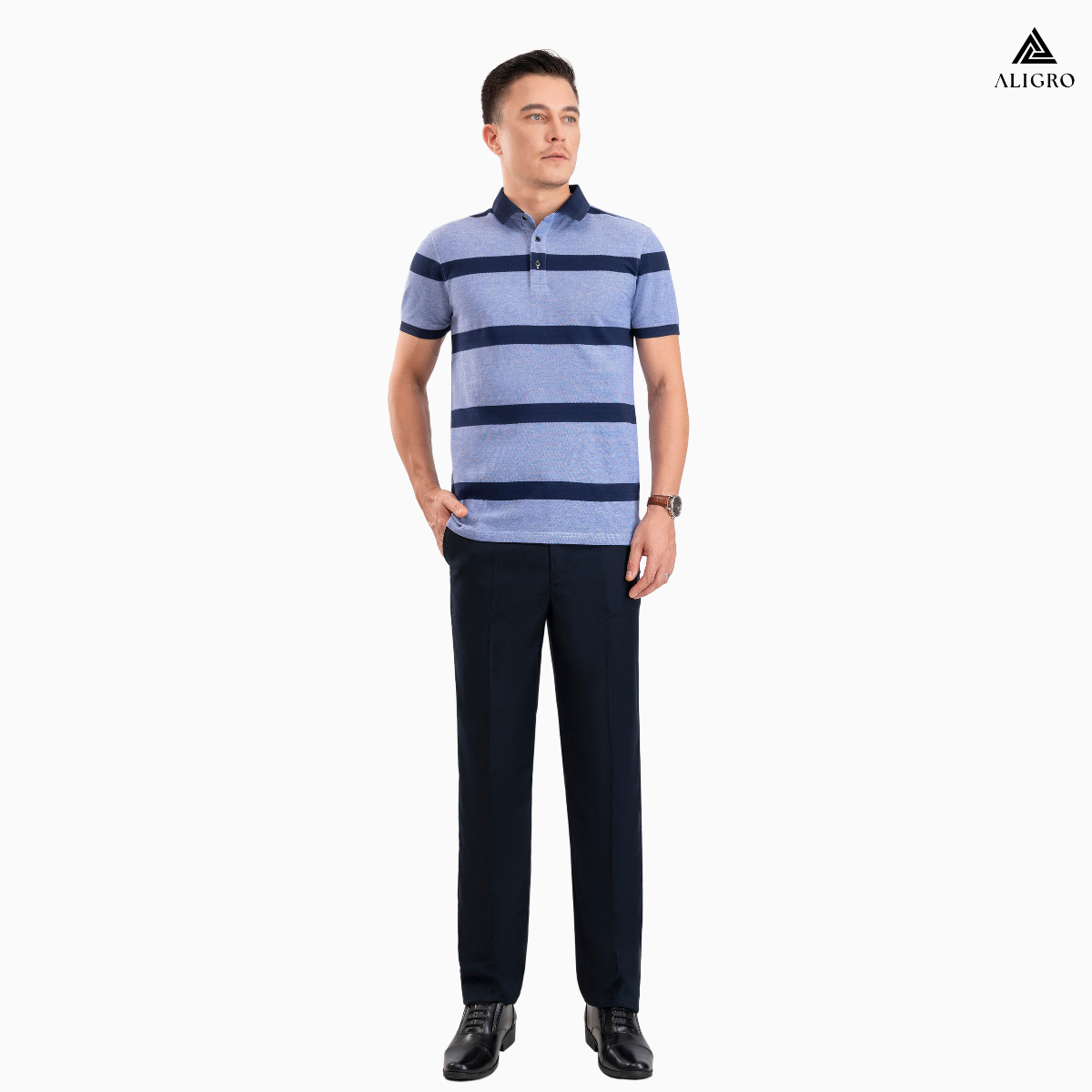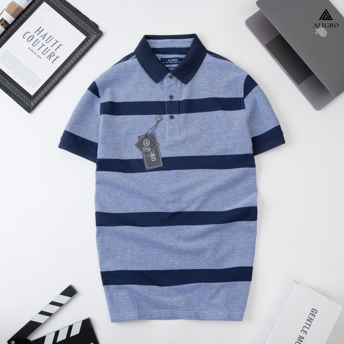 ✨Áo Polo nam ngắn tay kẻ ngang navy-xanh ALGPLO97