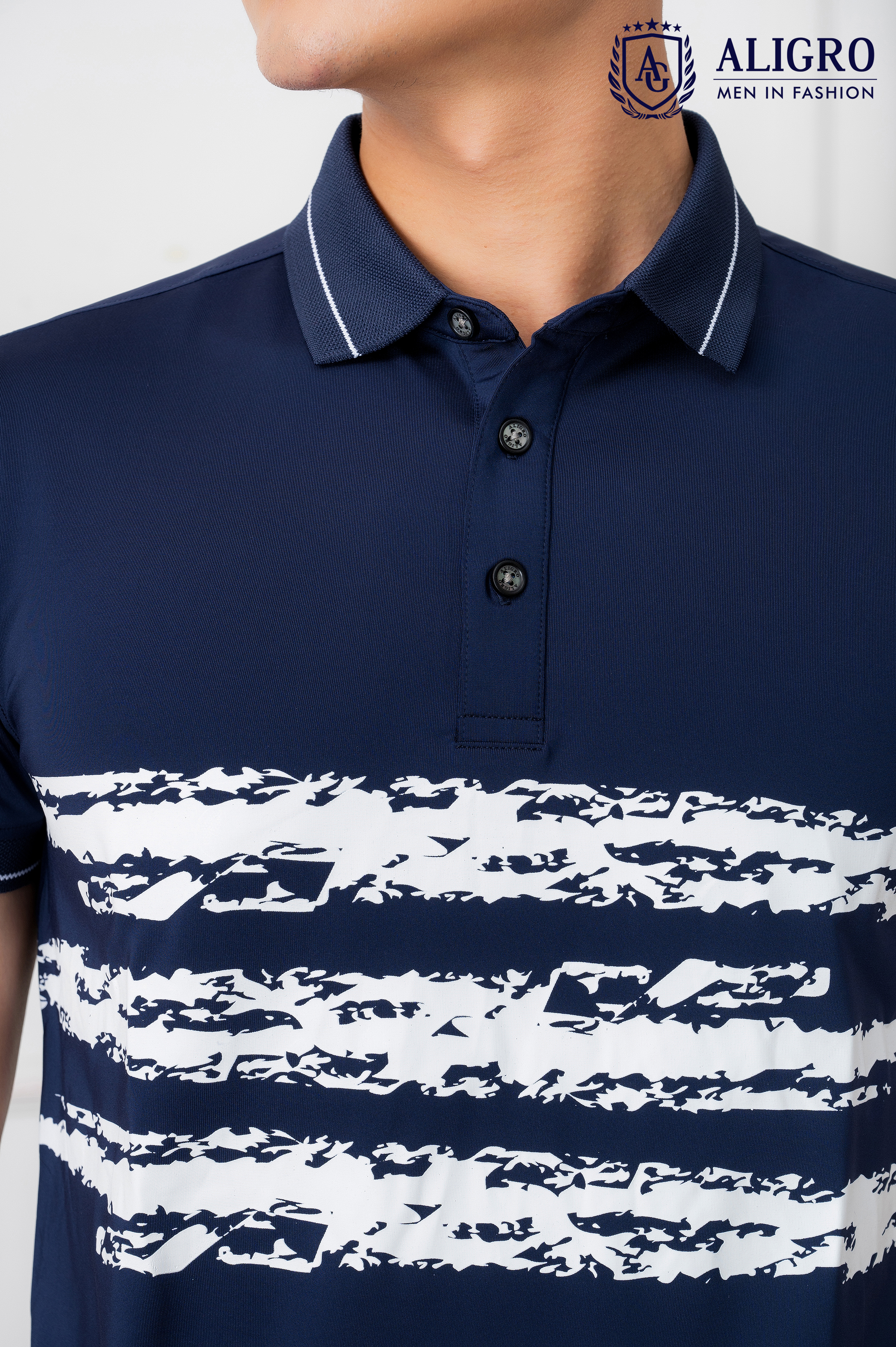 ✨Áo Polo xanh navy phối kẻ ngang Aligro ALGPLO72