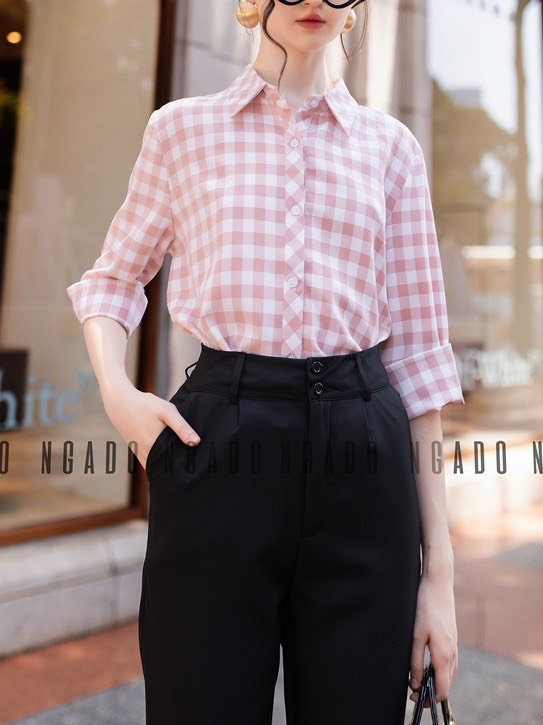 Áo sơ mi nữ dài tay caro sọc nhỏ