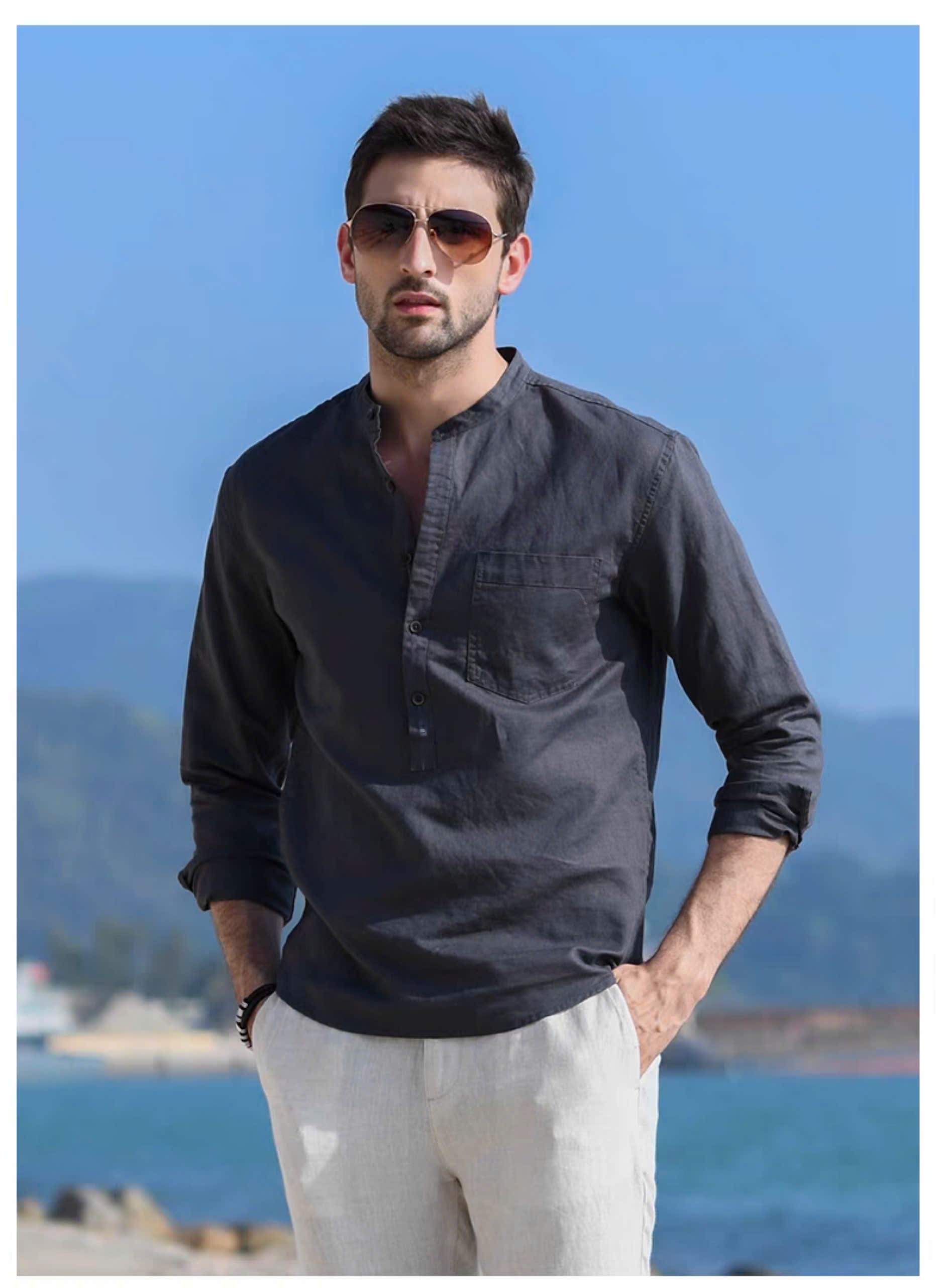 Áo sơ mi nam form rộng cổ tàu cổ trụ tay dài Giấu Nút phong cách hàn quốc trẻ trung lịch lãm-MRDT02 - ÁO SƠ MI NAM RỘNG TAY DÀI mặc rộng thoải mát, mát