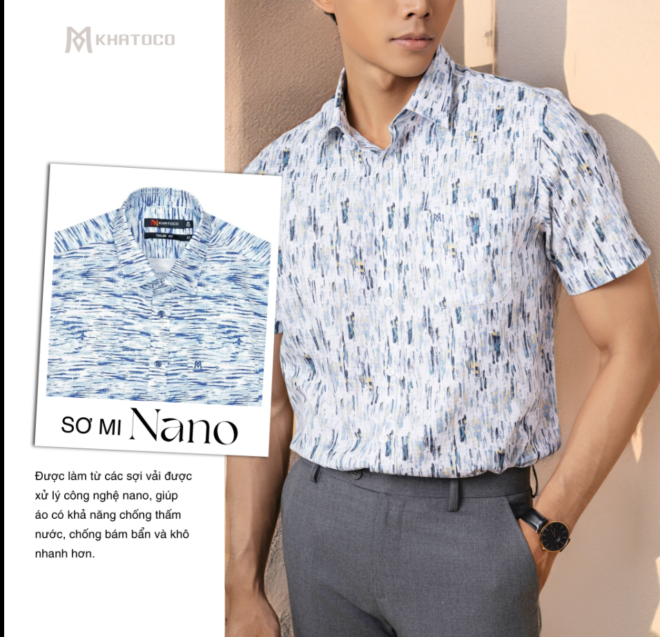 Mua tại TiktokMô tả sản phẩm: Áo sơ mi nam tay ngắn Khatoco lai ngang - Chất liệu cao cấp: - 81% Polyester (Microfiber) - 19% Viscose (Modal) → Kết hợp mang lại cảm giác mềm mại,