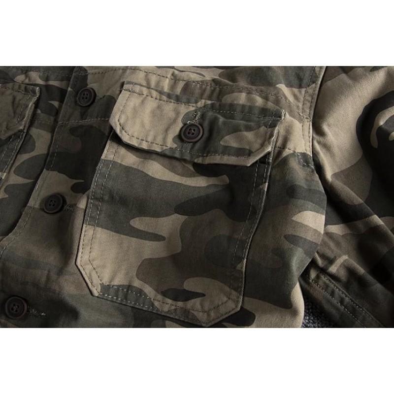 Áo sơ mi Retro túi hộp ngắn tay lính_dã ngoại Áo sơ mi quân đội Wild Casual Chất kaki được wash acid cực bụi , phom chuẩn mặc rất đẹp ạ Model thế hệ mới