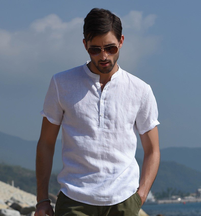 ✨Áo sơ mi linen dành cho nam, trơn cổ trụ, sơ mi hàn quốc Haint Boutique, form vừa