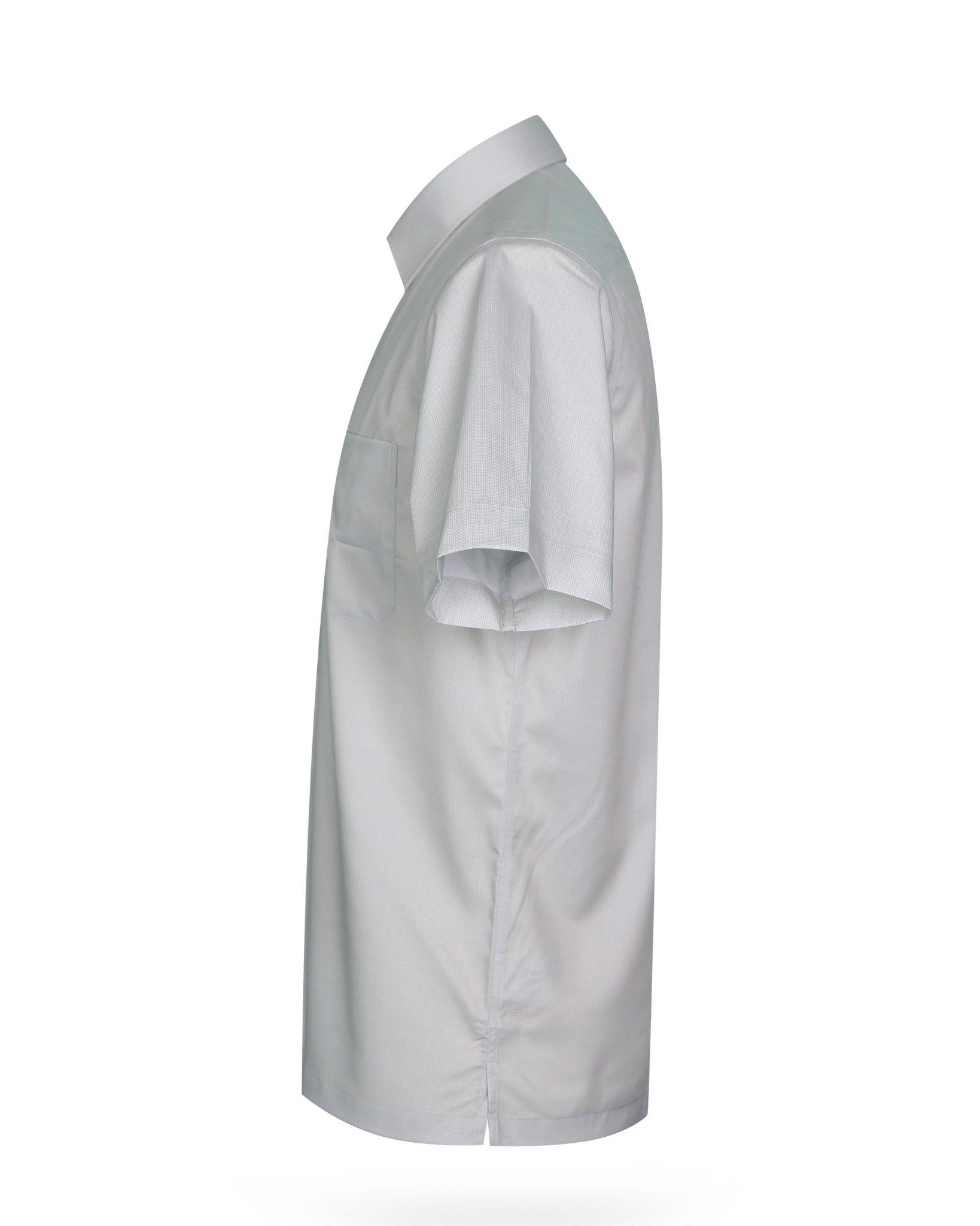 Áo sơ mi nam tay ngắn lai ngang – Khatoco - Mã hàng: A1MN498T2 - Chất liệu: - 77% Polyester (Microfiber) - 19% Viscose (Modal) - 4% Spandex → Vải cao cấp, mềm mại, thấm