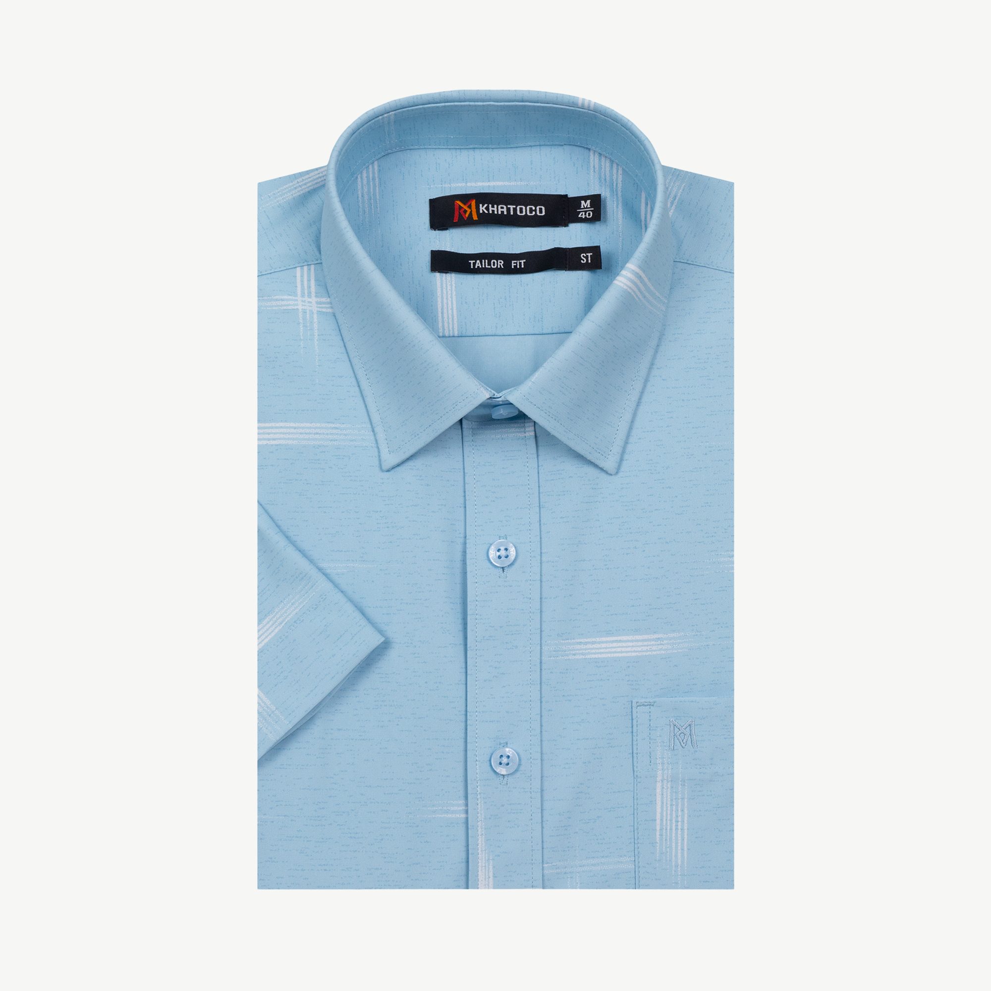 Áo sơ mi nam tay ngắn lai ngang – Khatoco - Mã hàng: A1MN538T2 - Chất liệu: 75% Polyester + 22% Viscose (Bamboo) + 3% Spandex → Vải mềm mại, thoáng mát, co giãn nhẹ,