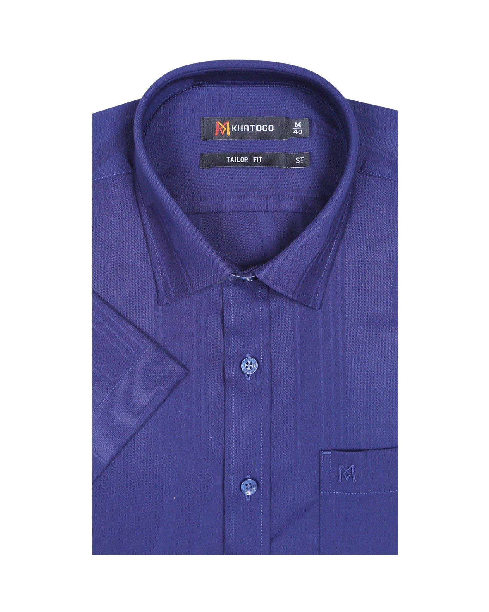 Áo sơ mi nam tay ngắn lai ngang – Khatoco - Mã hàng: A1MN538T2 - Chất liệu: 75% Polyester + 22% Viscose (Bamboo) + 3% Spandex → Vải mềm mại, thoáng mát, co giãn nhẹ,
