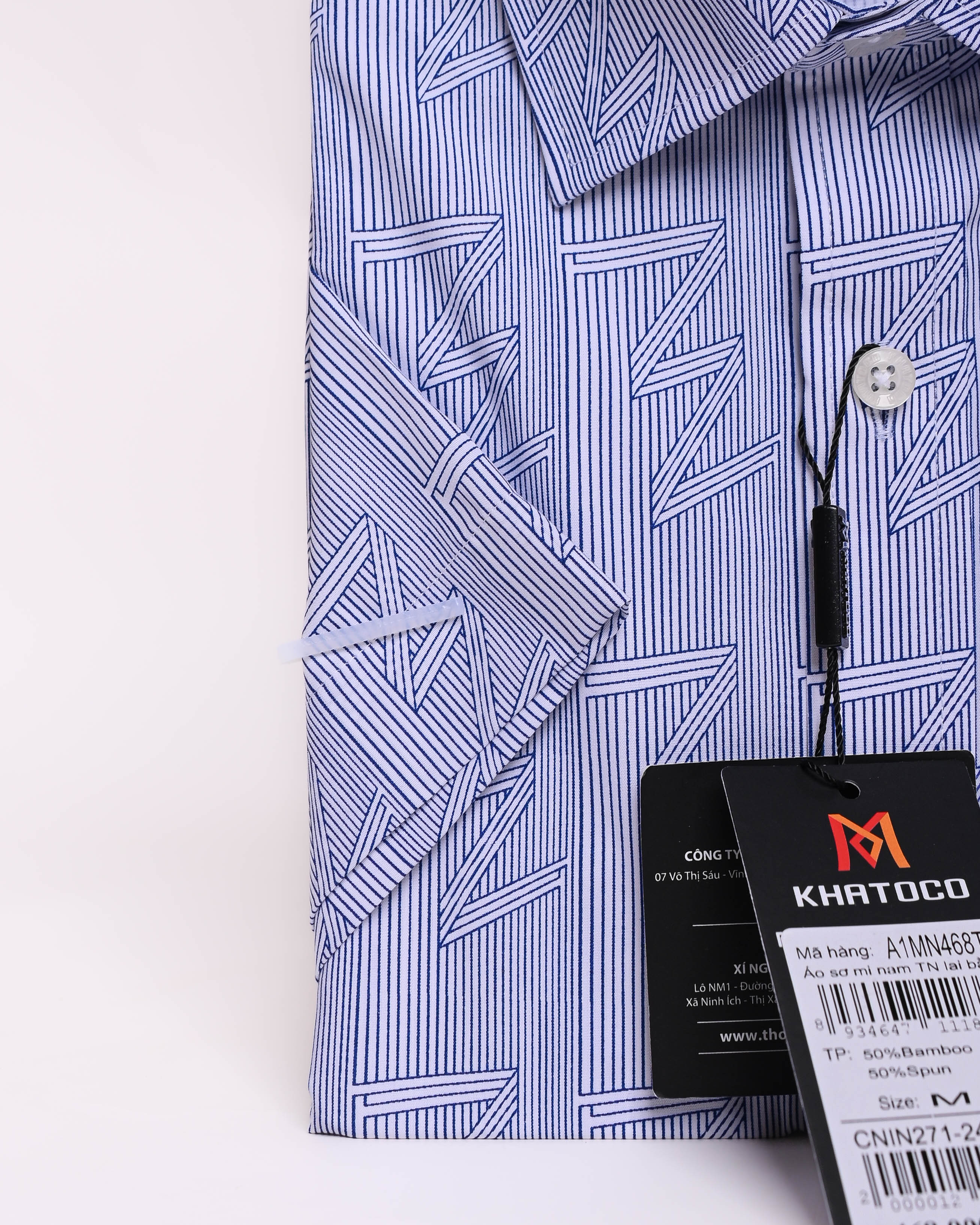 Áo sơ mi nam tay ngắn lai ngang – Khatoco - Mã hàng: A1MN538T2 - Chất liệu: 75% Polyester + 22% Viscose (Bamboo) + 3% Spandex → Vải mềm mại, thoáng mát, co giãn nhẹ,