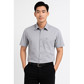 Áo sơ mi nam tay ngắn lai ngang – Khatoco - Mã hàng: A1MN498T2 - Chất liệu: - 77% Polyester (Microfiber) - 19% Viscose (Modal) - 4% Spandex → Vải cao cấp, mềm mại, thấm