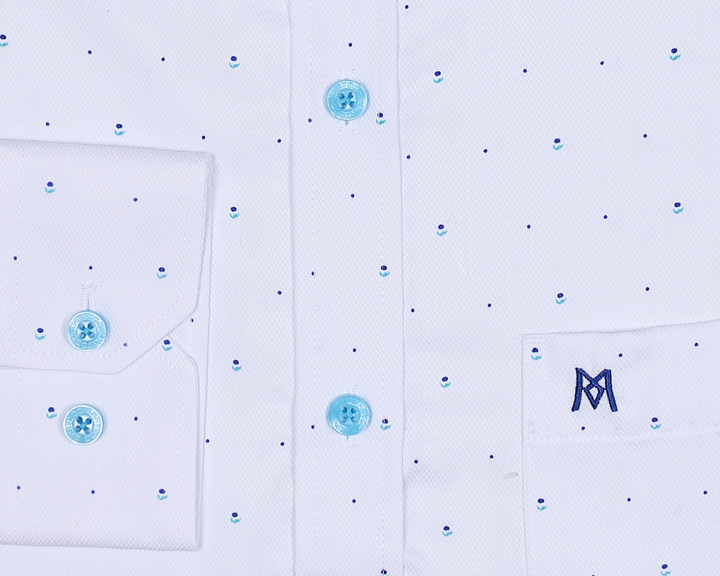 Áo sơ mi nam trung niên, Áo sơ mi nam công sở Anton, Áo sơ mi trắng dài tay trắng họa tiết chấm bi Y302 Vải cotton thoáng mát, thấm hút tốt, mềm mịn không