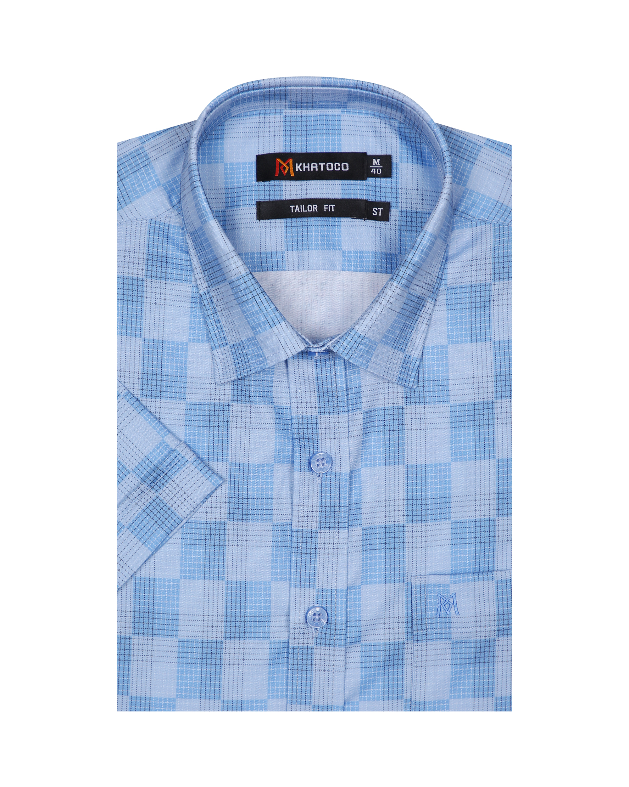 Áo sơ mi nam tay ngắn lai ngang – Khatoco - Mã hàng: A1MN538T2 - Chất liệu: 75% Polyester + 22% Viscose (Bamboo) + 3% Spandex → Vải mềm mại, thoáng mát, co giãn nhẹ,