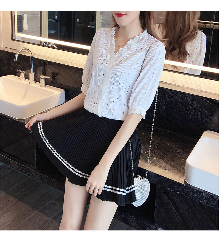 Kiểu dáng: áo sơ mi công sở cổ tim thanh lịch, phối nút duyên dáng, tay dài cài nút phong cách phù hợp công sở, công tác, đi dạy, đi học, đi tiệc Chất liệu: