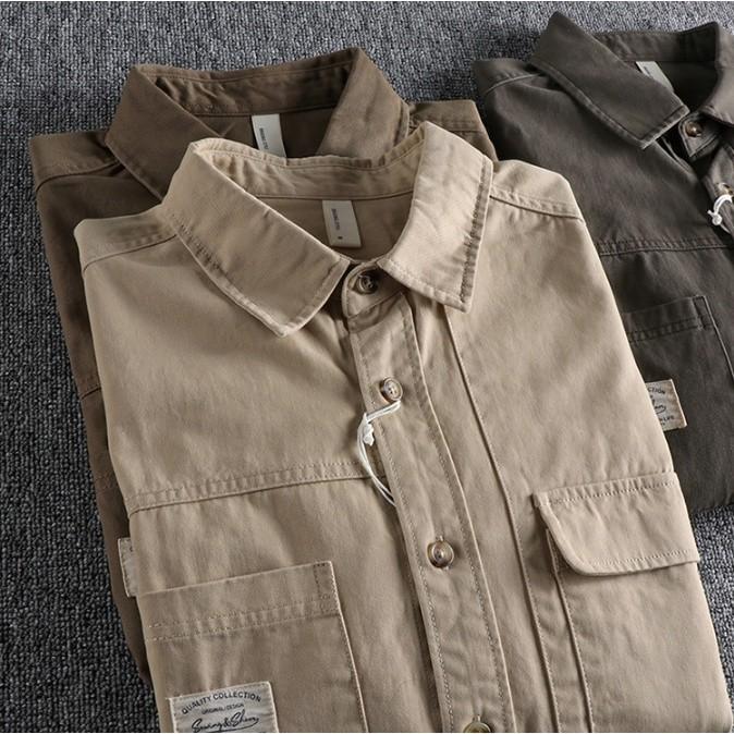 Áo sơ mi túi hộp phong cách Retro lính_dã ngoại Áo sơ mi Wild Casual Màu đang hot lắm ạ Chất kaki được wash acid cực bụi , phom chuẩn mặc rất đẹp ạ Size:
