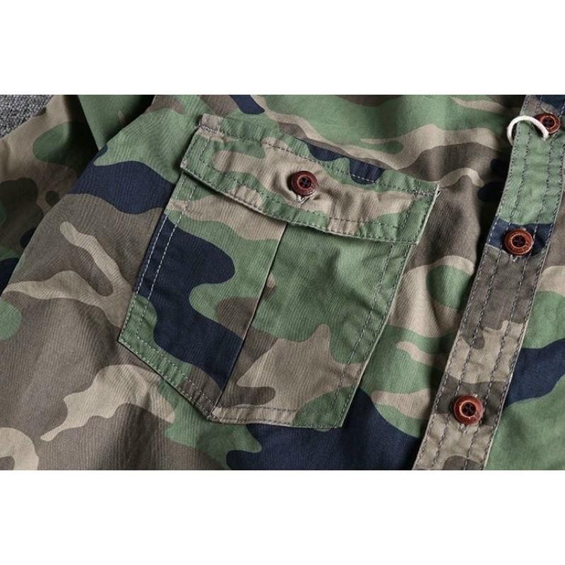 Áo sơ mi túi hộp phong cách Retro_dã ngoại Áo sơ mi chiến thuật Màu đang hot lắm ạ Chất kaki được wash acid cực bụi , phom chuẩn mặc rất đẹp ạ Size: M: