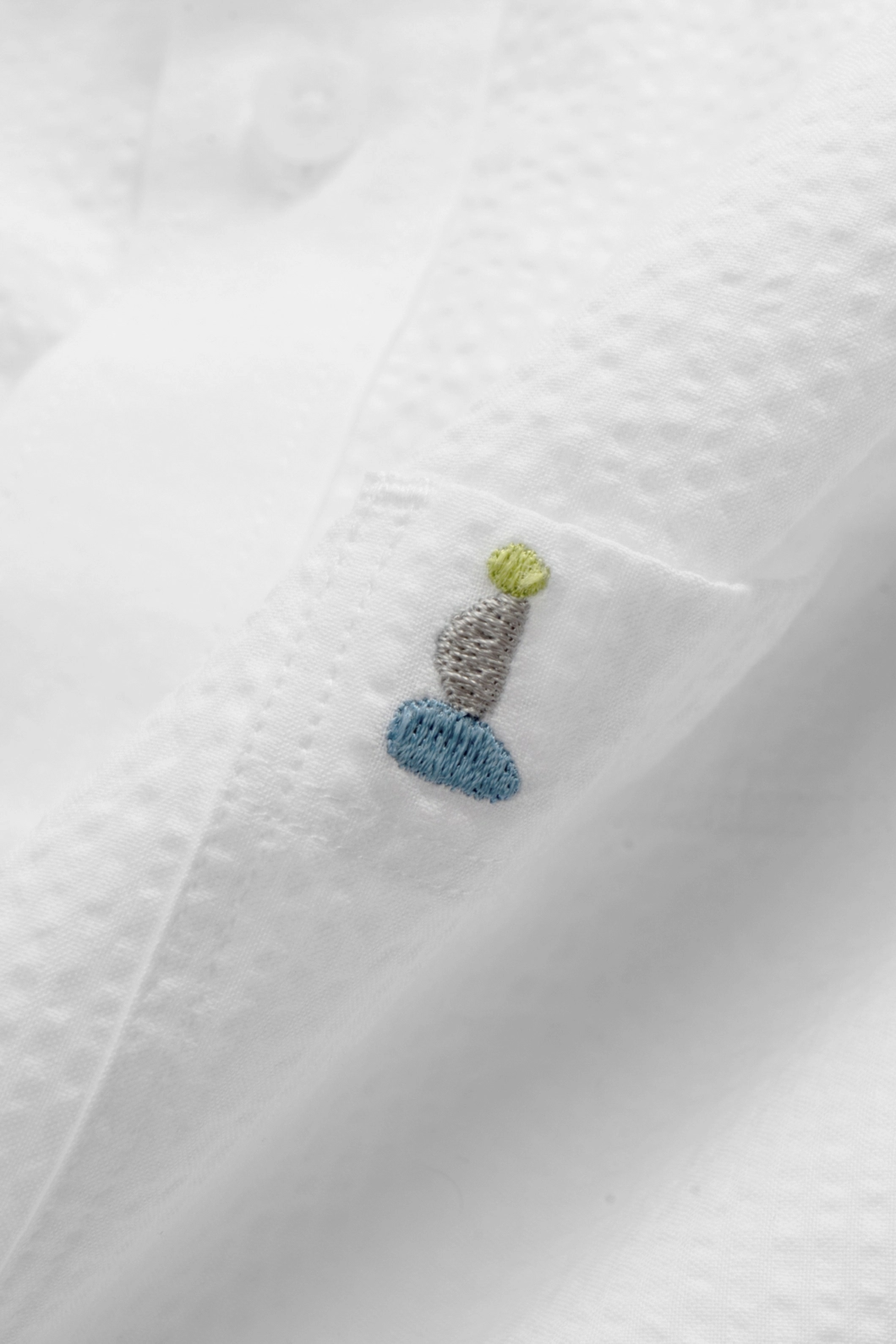 • Chiếc áo sơ mi cơ bản, là trang phục không thể thiếu với quý ông công sở. • Nút ton-sur-ton khắc logo đẹp mắt phối trọn vẹn màu áo. • Logo thêu sắc nét