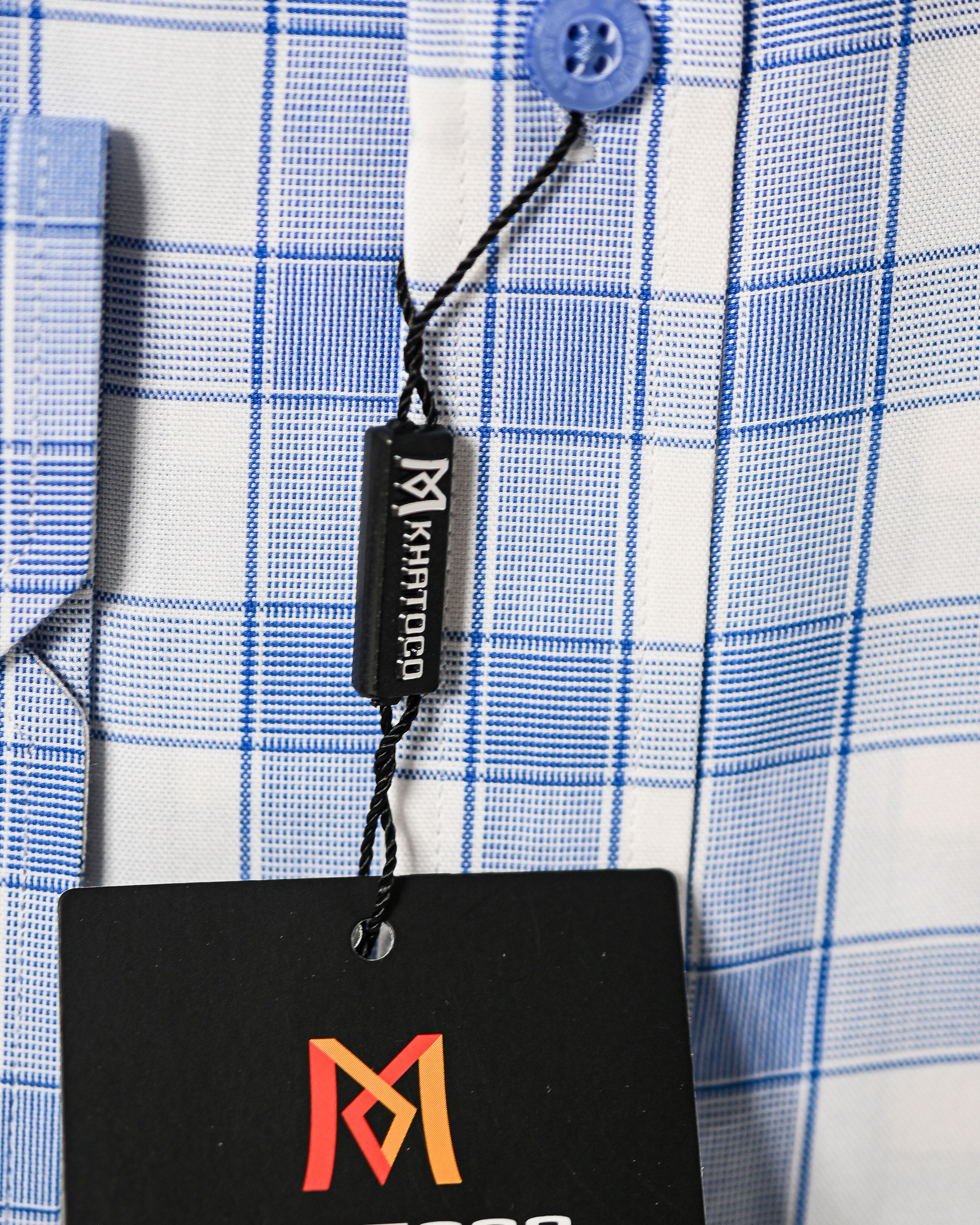 Khởi động ngày mới cùng Thời trang Khatoco Áo sơ mi kẻ caro xanh trắng với sự kết hợp màu sắc hài hòa giữa xanh trời nhẹ nhàng, chút trắng tinh tế đem lại sự