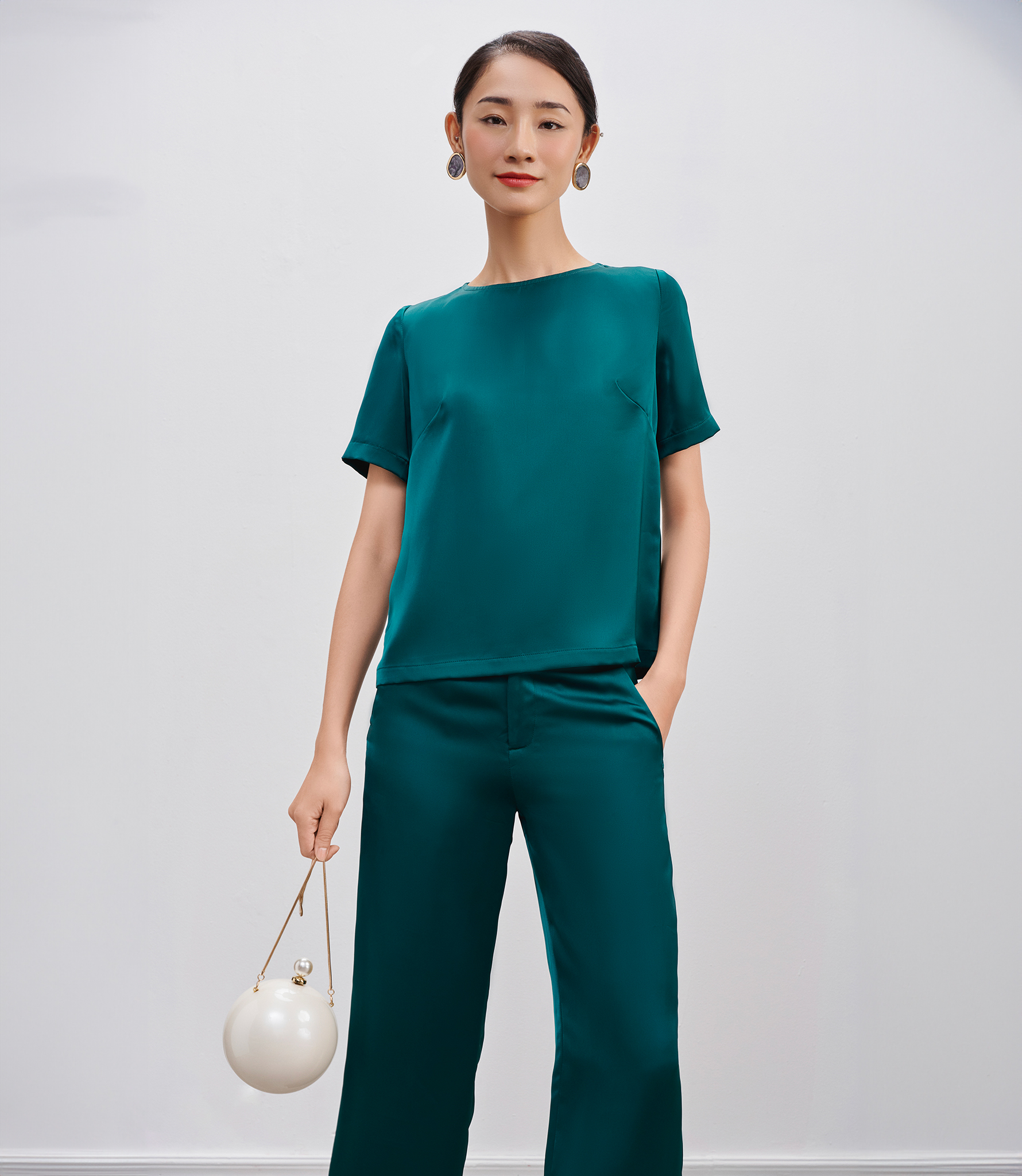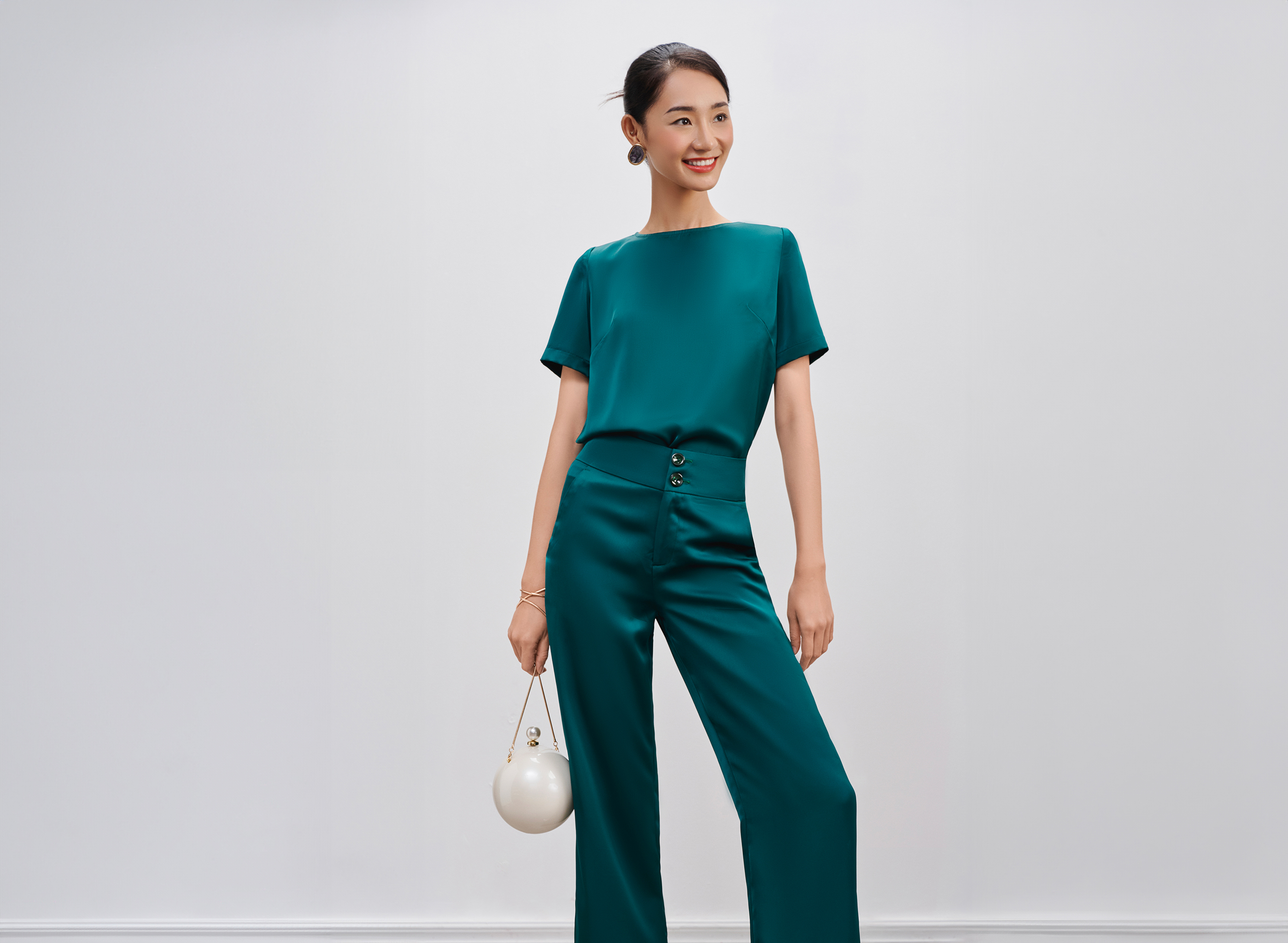 Để trang phục đồng bộ được điểm xuyết tinh tế, bạn có thể hoàn thiện vẻ ngoài thời thượng với phụ kiện vòng cổ, túi xách, giày dép hoặc biến tấu sáng tạo chơi đùa với layer như thêm áo khoác, blazer... theo thời tiết và hoàn cảnh.
