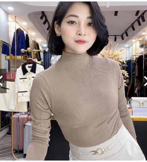 Áo giữ nhiệt nữ cổ lọ cao, sợi len mềm mại, đàn hồi tốt, ôm lấy thân hình, rất gợi cảm và nữ tính.