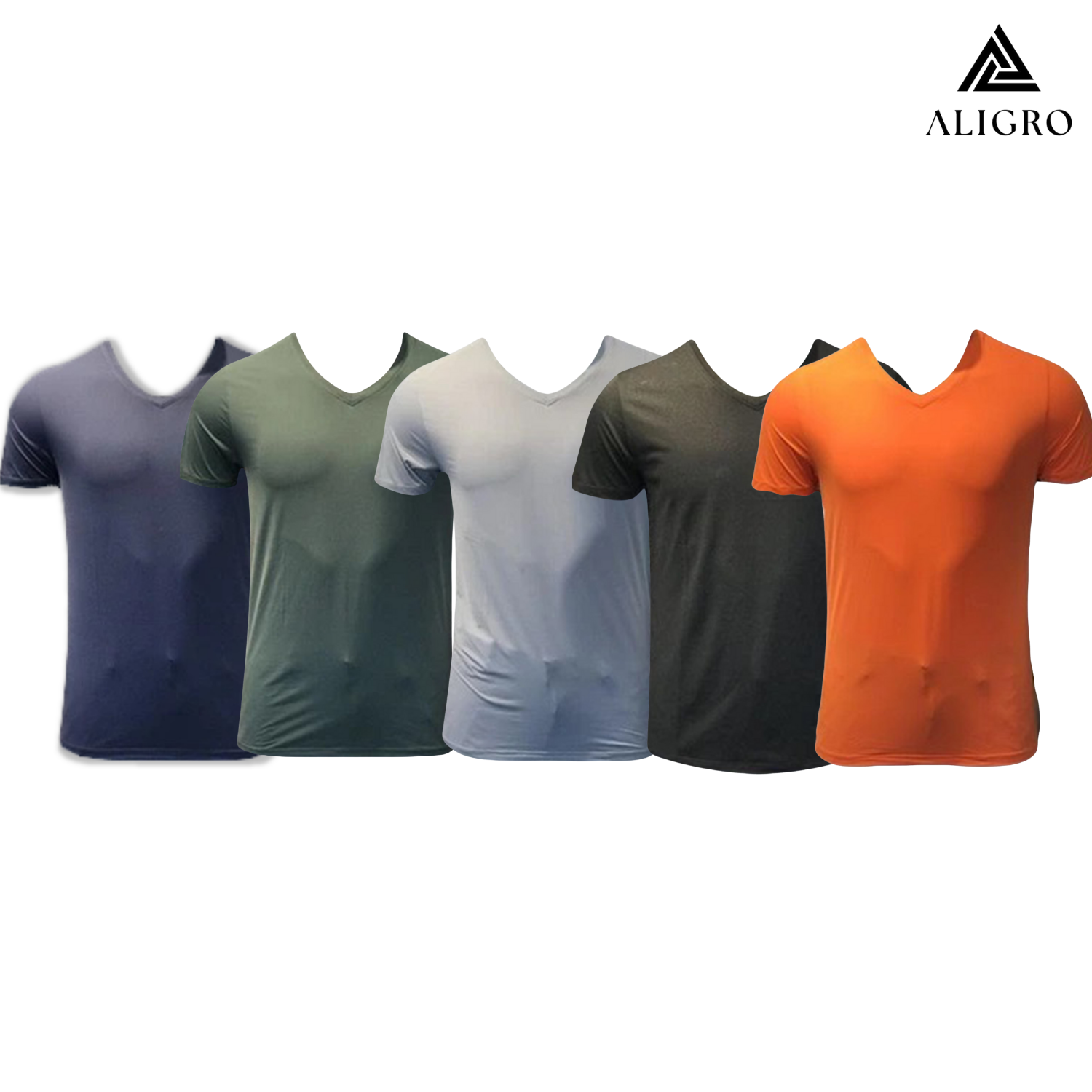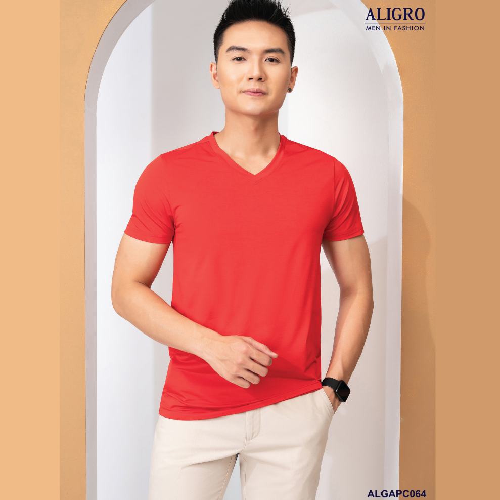 ✨Áo thun nam ALIGRO chất liệu thun lạnh cổ tim kiểu dáng thể thao thấm hút tốt co giãn thoải mái