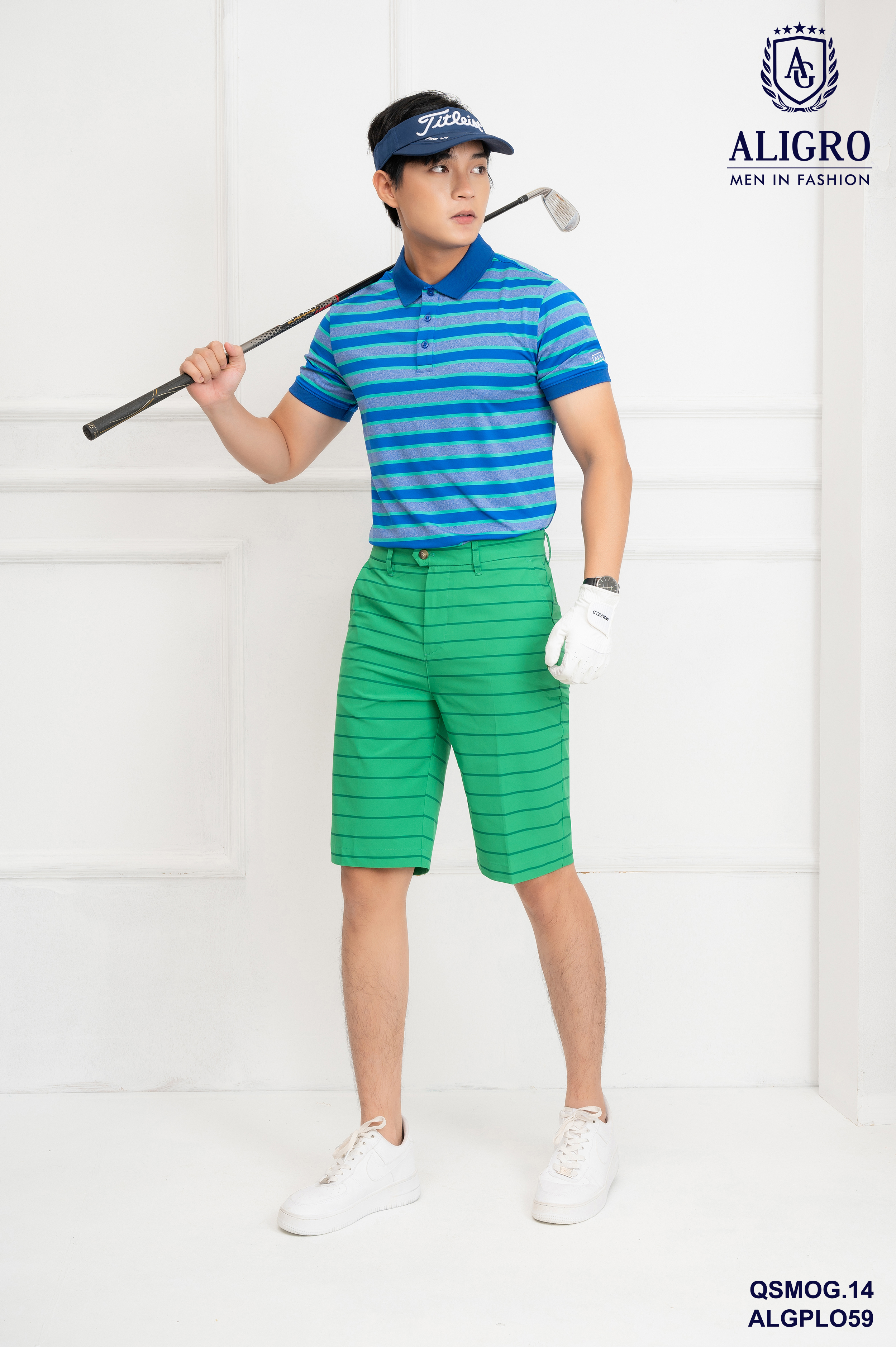 ✨Áo thun nam cộc tay kẻ ngang màu xanh aligro ALGPLO59