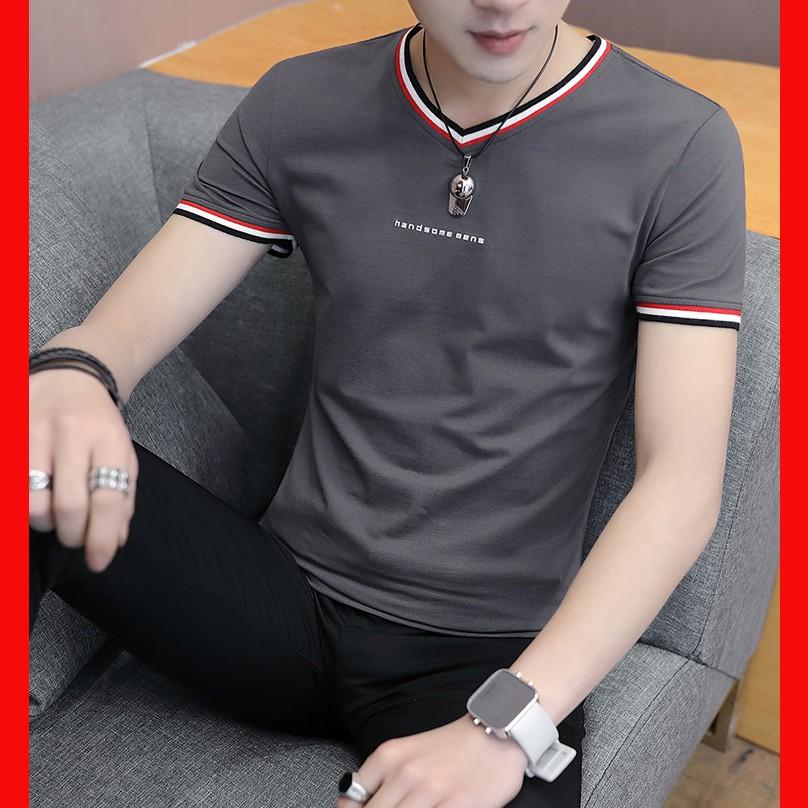 ✨ Áo thun nam ngắn tay cổ tim body thời trang Sitaki -Xám