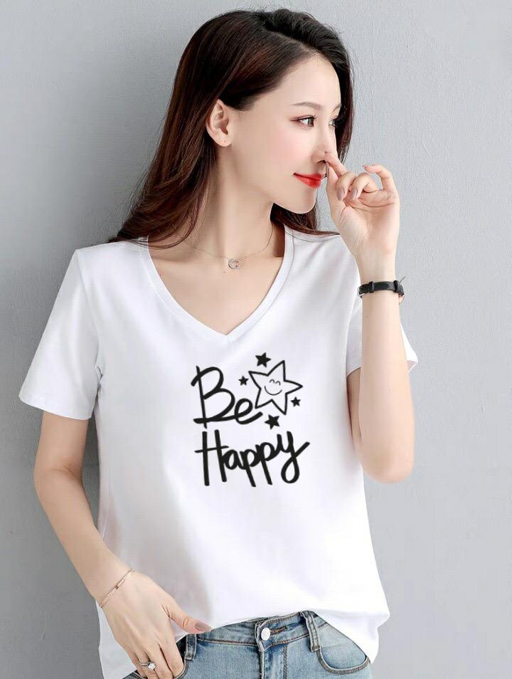 ✨Áo thun nữ cổ tim form rộng MXM in chữ Be Happy cực dễ thương thun 4 chiều từ 45-60kg ( ANU063 )