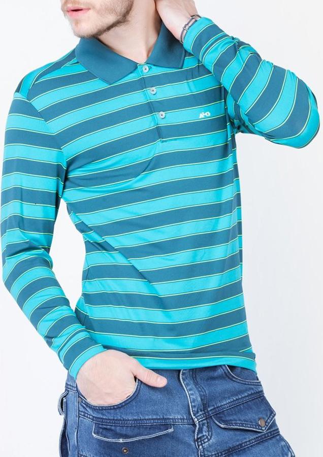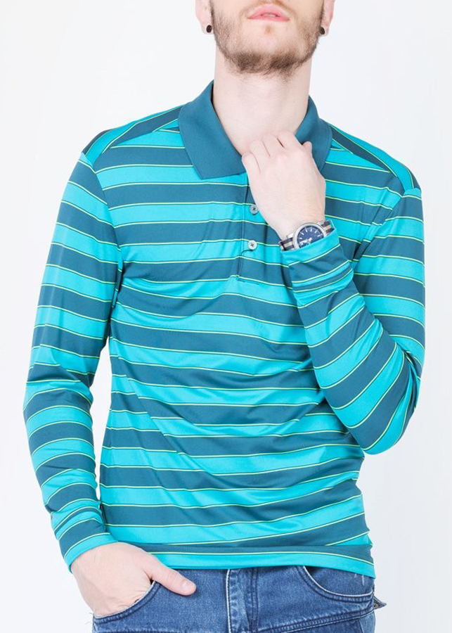 ✨Áo thun tay dài cổ bẻ kẻ màu xanh ngọc Aligo ALGAPD012