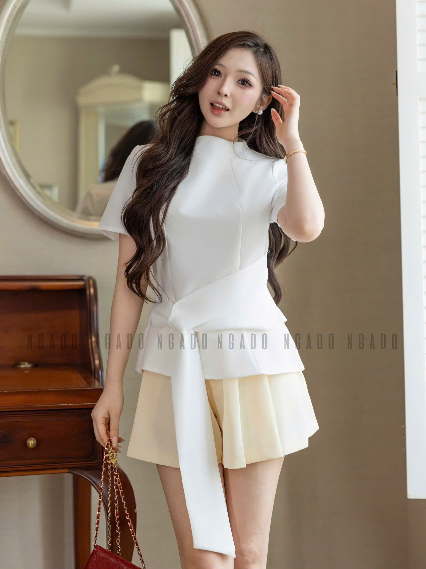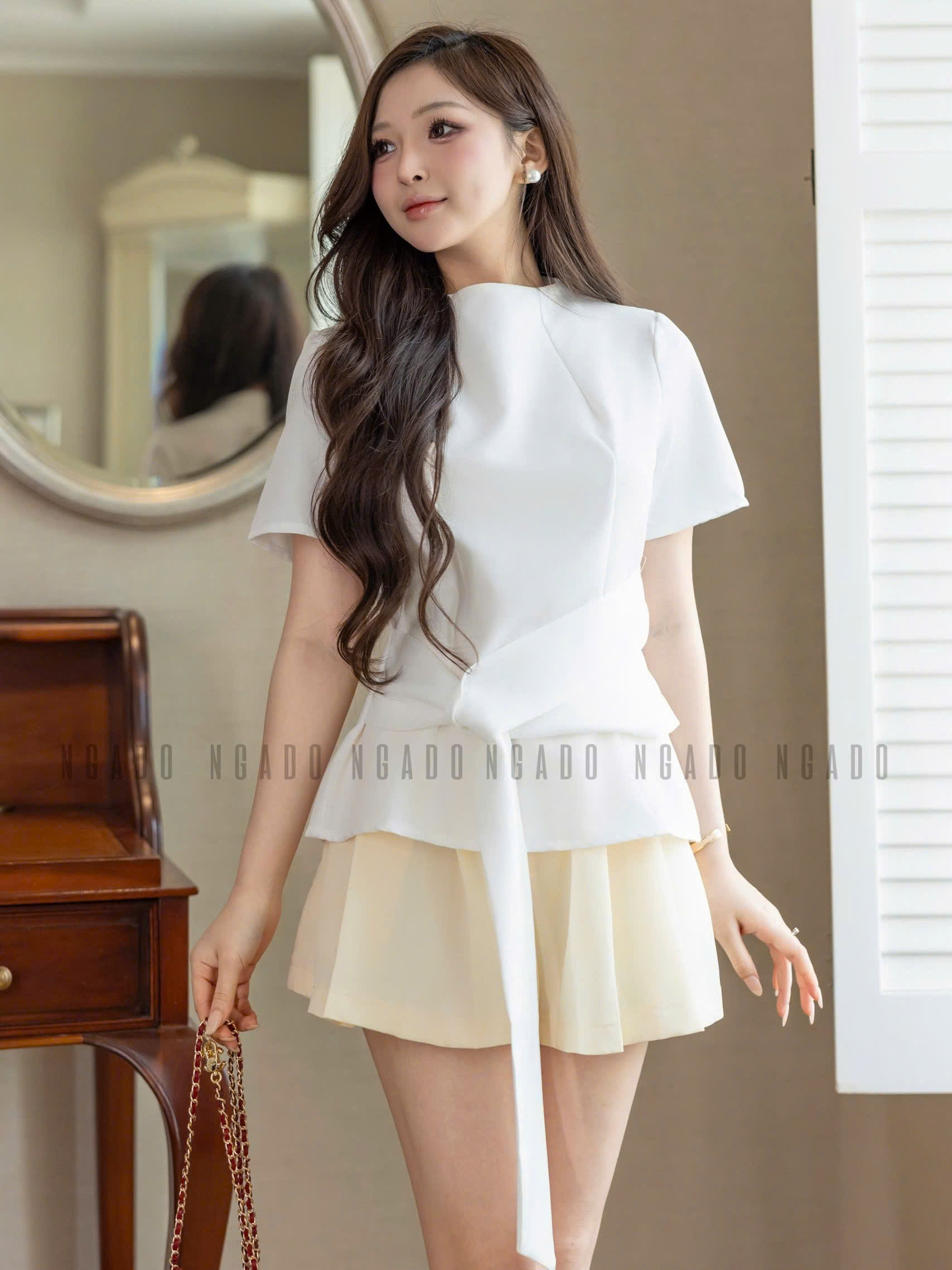 ✨Áo trắng cột eo NGADO , Áo nữ kiểu , Áo công sở , Áo đi học , Áo thiết kế