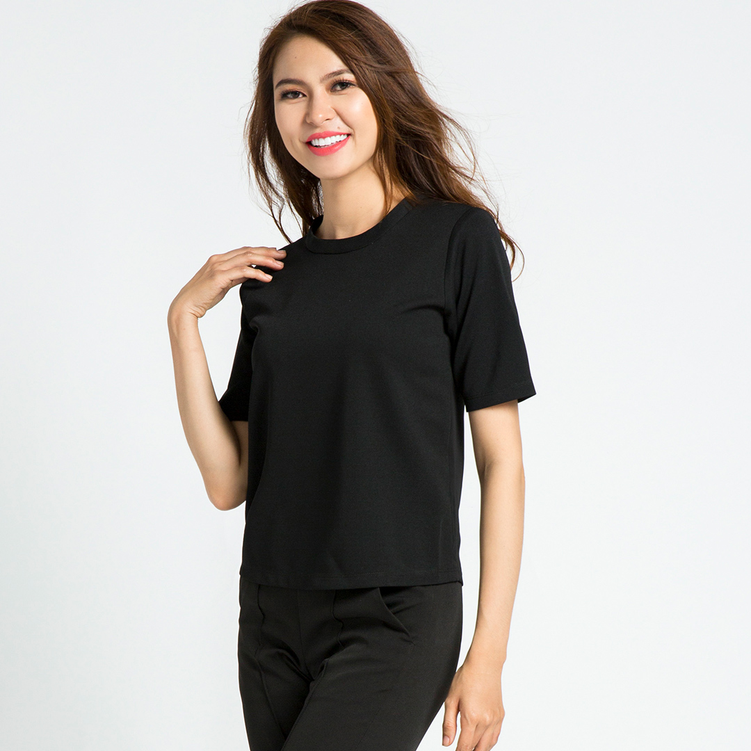 ღ THÔNG TIN SẢN PHẨM: Tên sản phẩm: Áo đen ngắn tay Màu sắc: Đen Chất liệu: Chất gân ý Chi tiết sản phẩm: không lót, không túi. Thông số