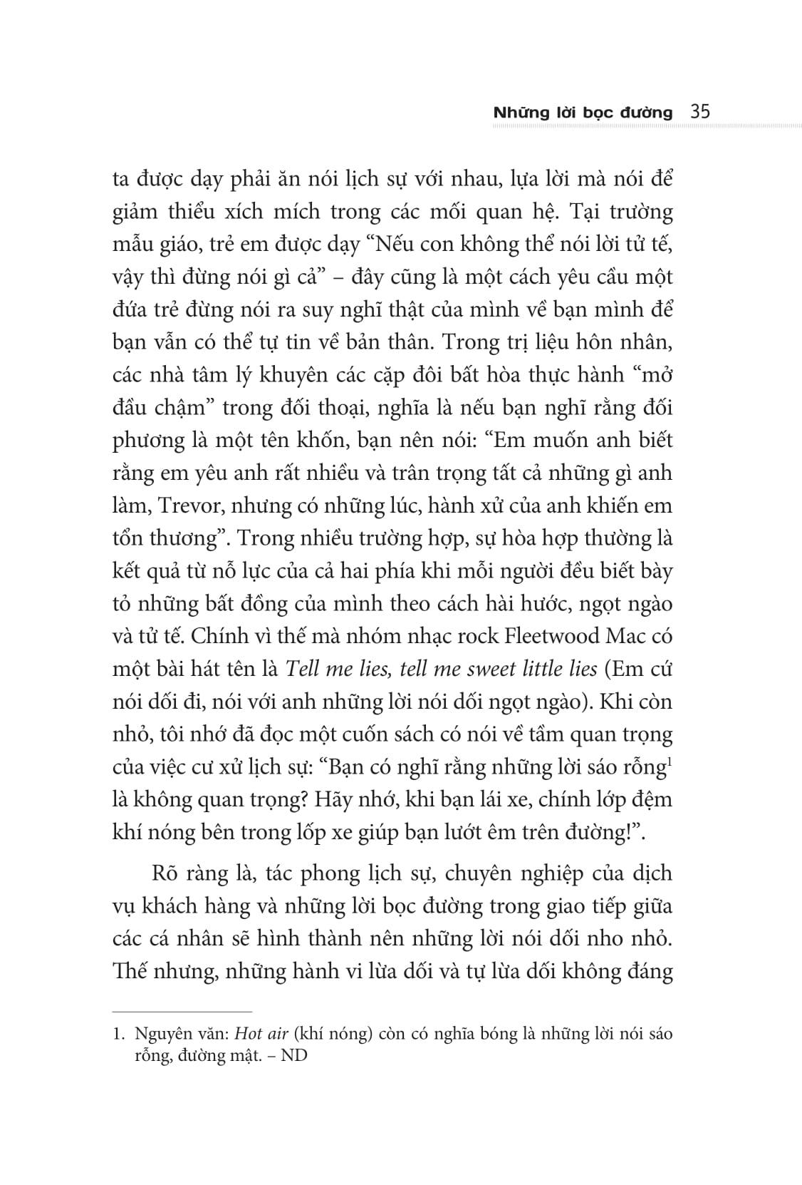 Thay vì tìm cách loại bỏ hành vi tự lừa dối và tất cả hệ quả mà nó mang lại, hãy hướng tới một mục tiêu tốt đẹp hơn: suy ngẫm về cách hành vi tự lừa dối vận hành và tự hỏi bản thân làm cách nào để tận dụng nó. Nói cách khác, chúng ta nên bớt quan tâm đến câu hỏi đơn thuần về tính đúng sai, mà nên đặt ra những câu hỏi phức tạp hơn: Hậu quả của hành vi tự lừa dối là gì? Nó phục vụ cho ai? Liệu lợi ích mà nó mang lại có đủ để biện minh cho những tổn thất?