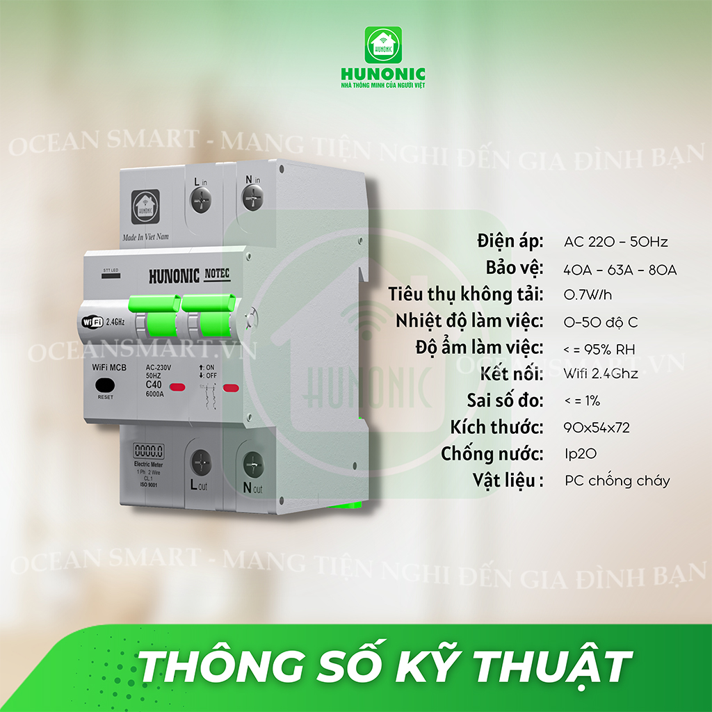 Aptomat Thông Minh Đo Năng Lượng Hunonic Notec | Aptomat Wifi Thông Minh | OCEANSMART.VN