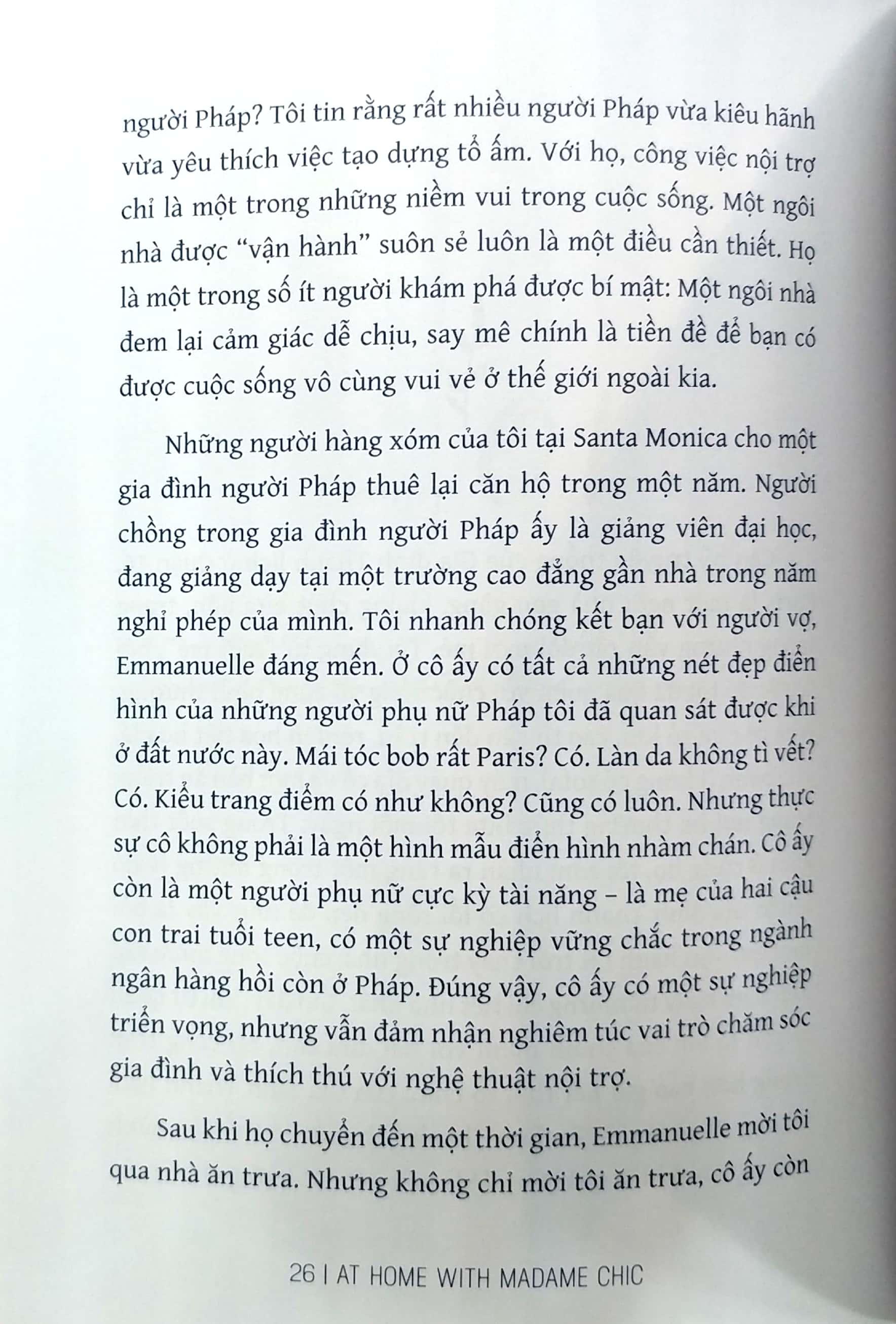 “Một phần gợi nhớ đến lối sống đầy đam mê, chẳng hề gắng gượng của người Pháp, và một phần chỉ cho ta cách tạo nên je ne sais quoi – sức hút khó tả đầy bí ẩn như họ.” – At home with Madame Chic sẽ giúp bạn yêu lại từ đầu ngôi nhà của mình, sống trọn từng khoảnh khắc – dù rất đỗi đời thường – thật nồng nhiệt và đầy đam mê.