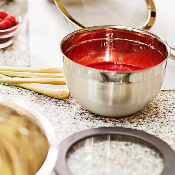 có thể được sử dụng làm bát phục vụ, bát trộn, bát salad – chúng mang lại vô số công dụng. Vành rót cho phép rót dễ dàng và sự kết hợp giữa thép không gỉ được đánh bóng và mờ mang lại cảm giác hiện đại. Bộ này bao gồm hai nắp mới của Rösle làm bằng thủy tinh có viền silicon để bịt kín hương liệu.