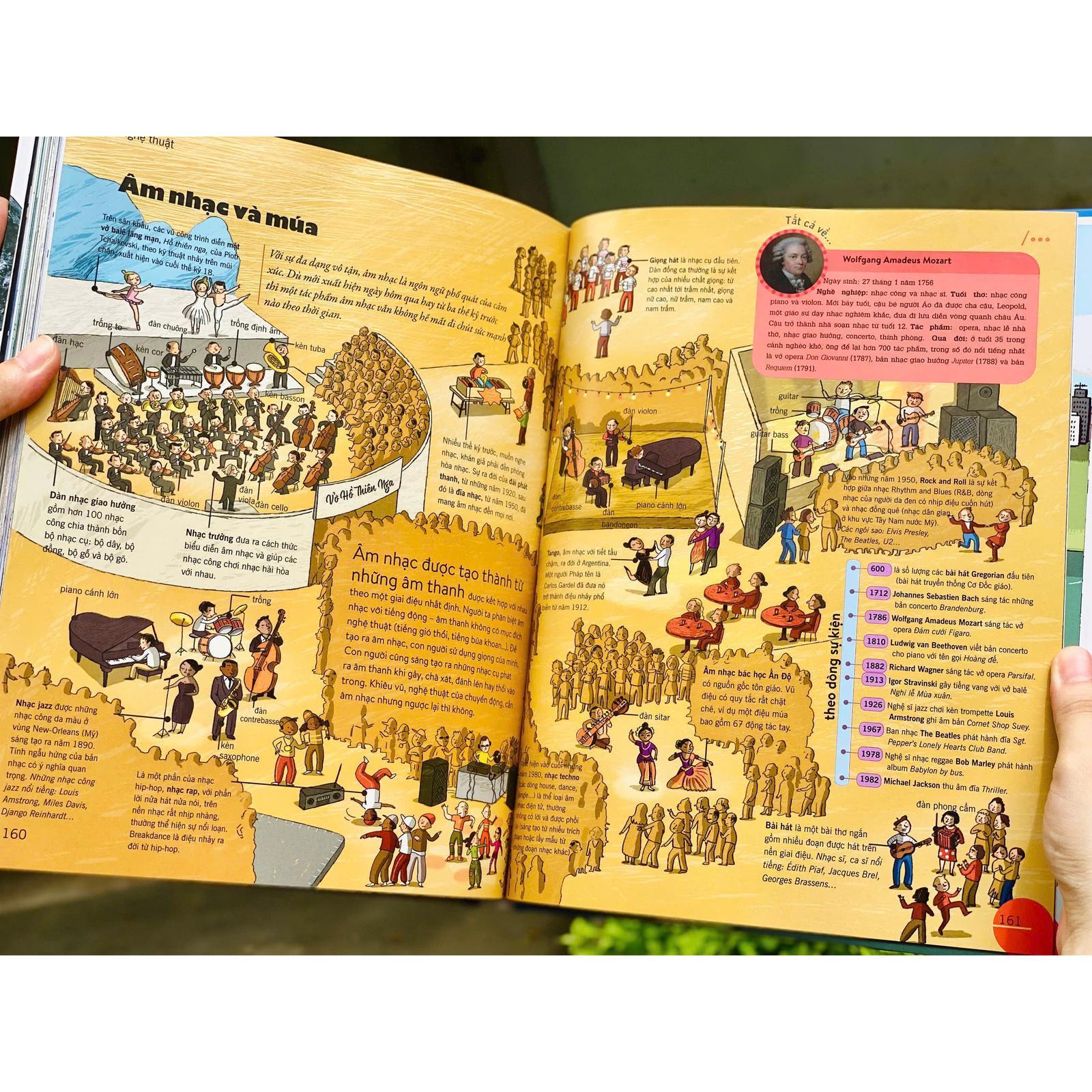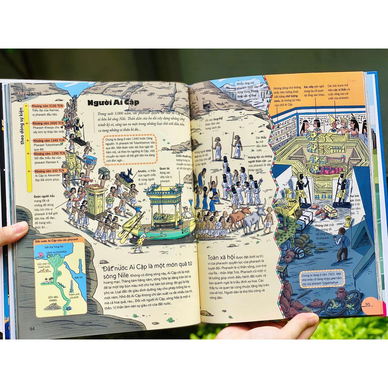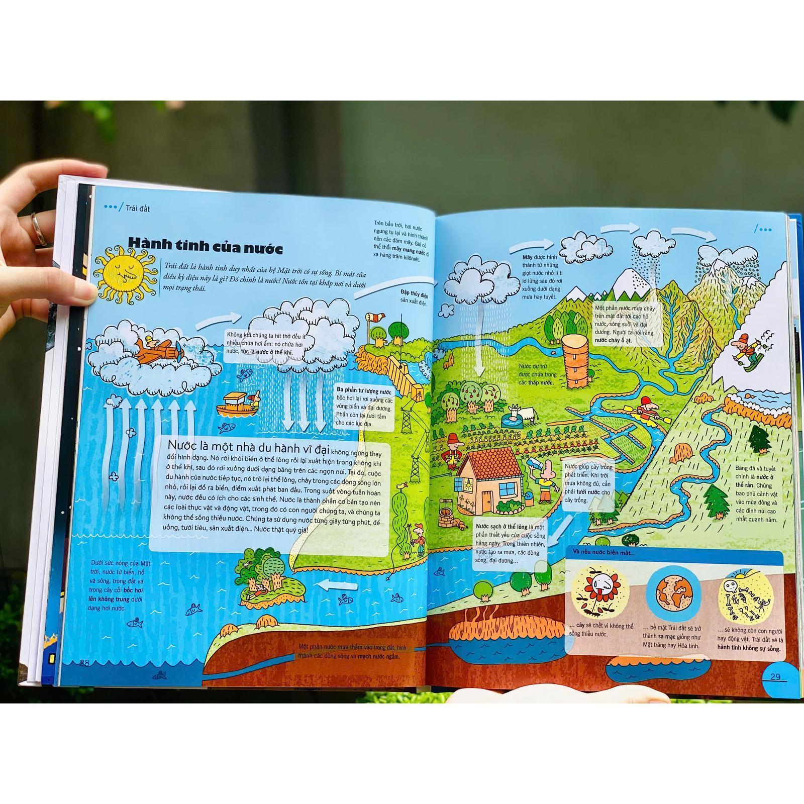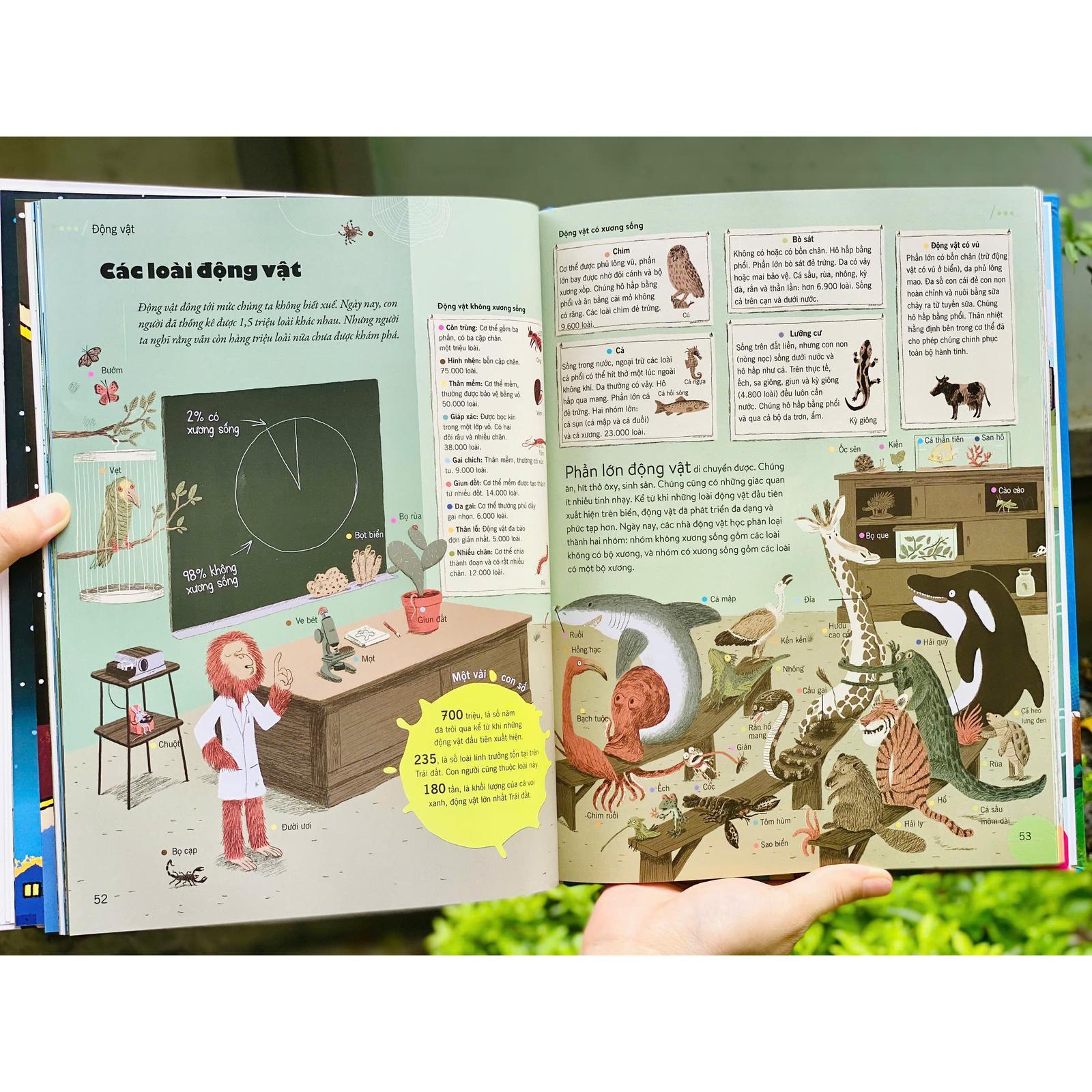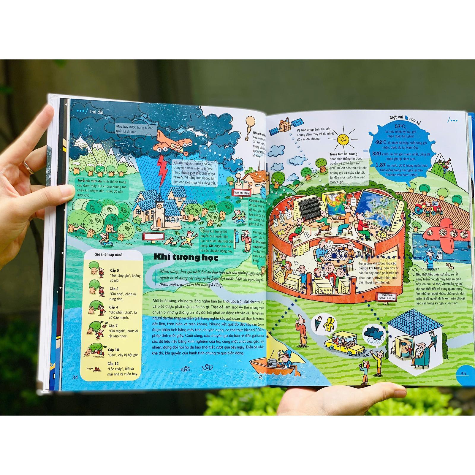 - Khoa học & Công nghệ Minh họa sống động – Thu hút cả những bạn nhỏ hiếu động nhất 184 trang in màu rực rỡ, ngập tràn hình ảnh trực quan giúp trẻ tiếp cận tri thức một cách tự nhiên, như đang bước vào một bộ phim tài liệu bằng tranh. Kiến thức nhập môn của nhiều môn học – trong một cuốn sách duy nhất
