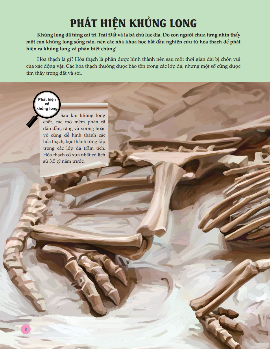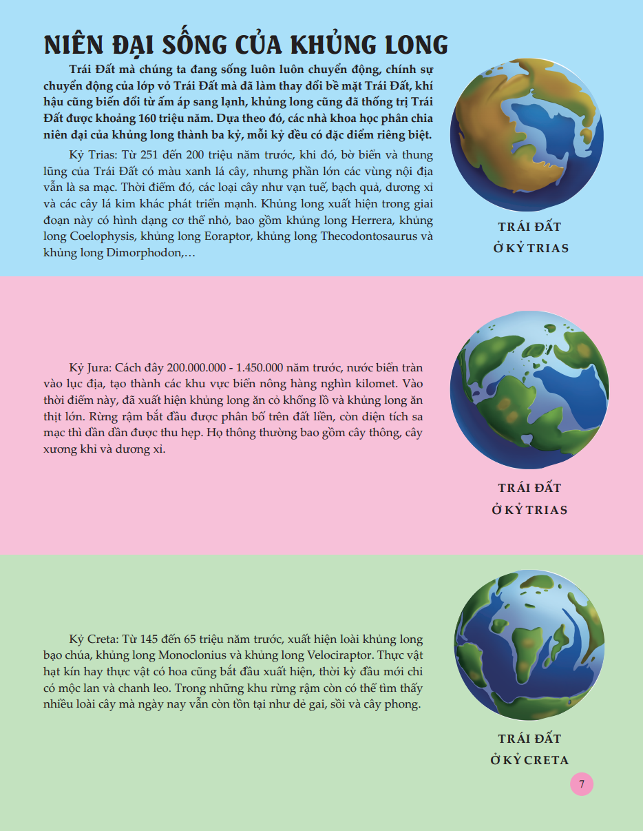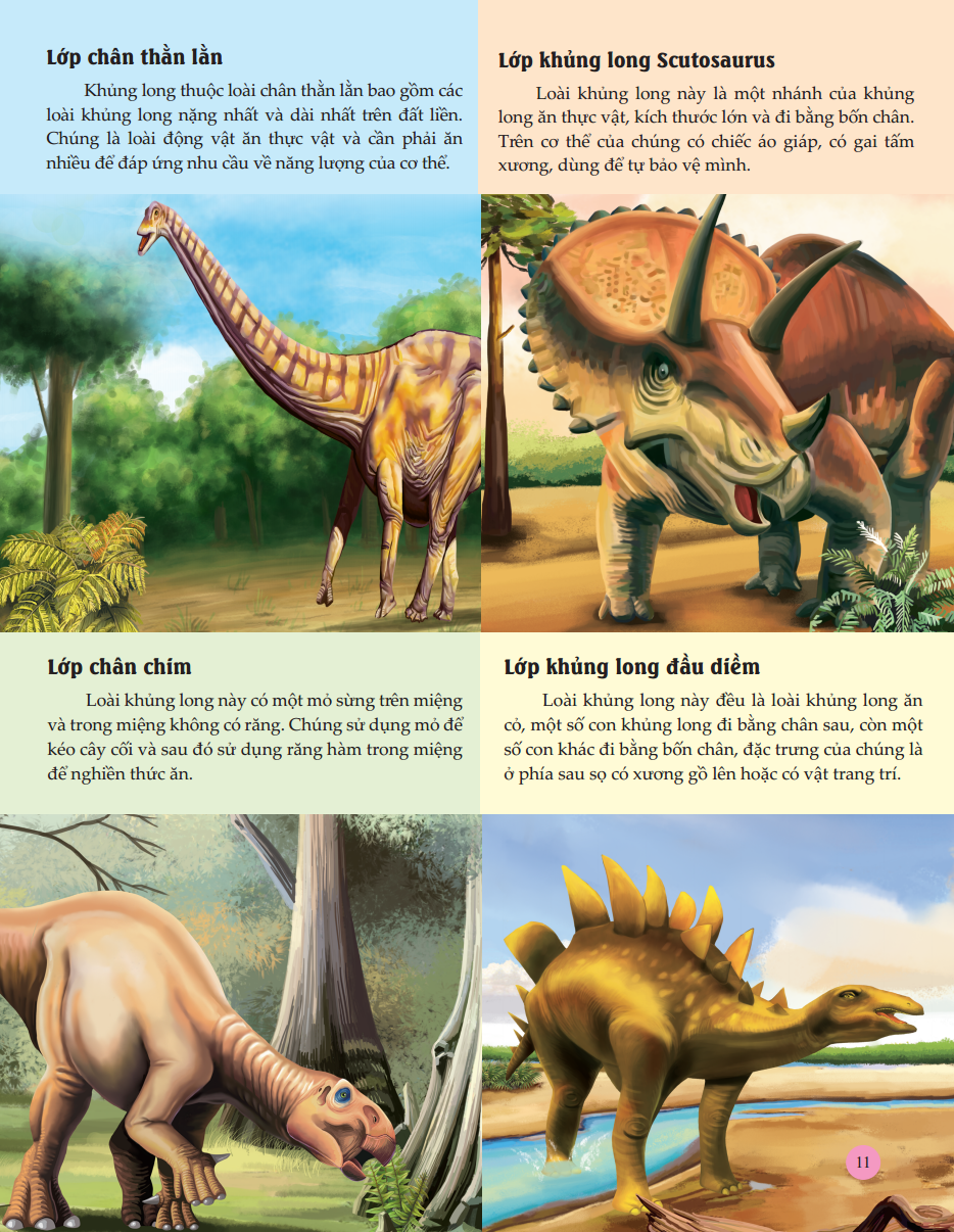 Sách sẽ mang đến cho các em những thông tin cũng những hình ảnh minh họa trực quan về niên đại sinh sống sống của khủng long, phát hiện khủng long, phân loại khủng long, khủng long hông thằn lằn, khủng long hông chim. Đến cuối cùng là tìm hiểu về những điều đứng thứ nhất của vương quốc khủng long .