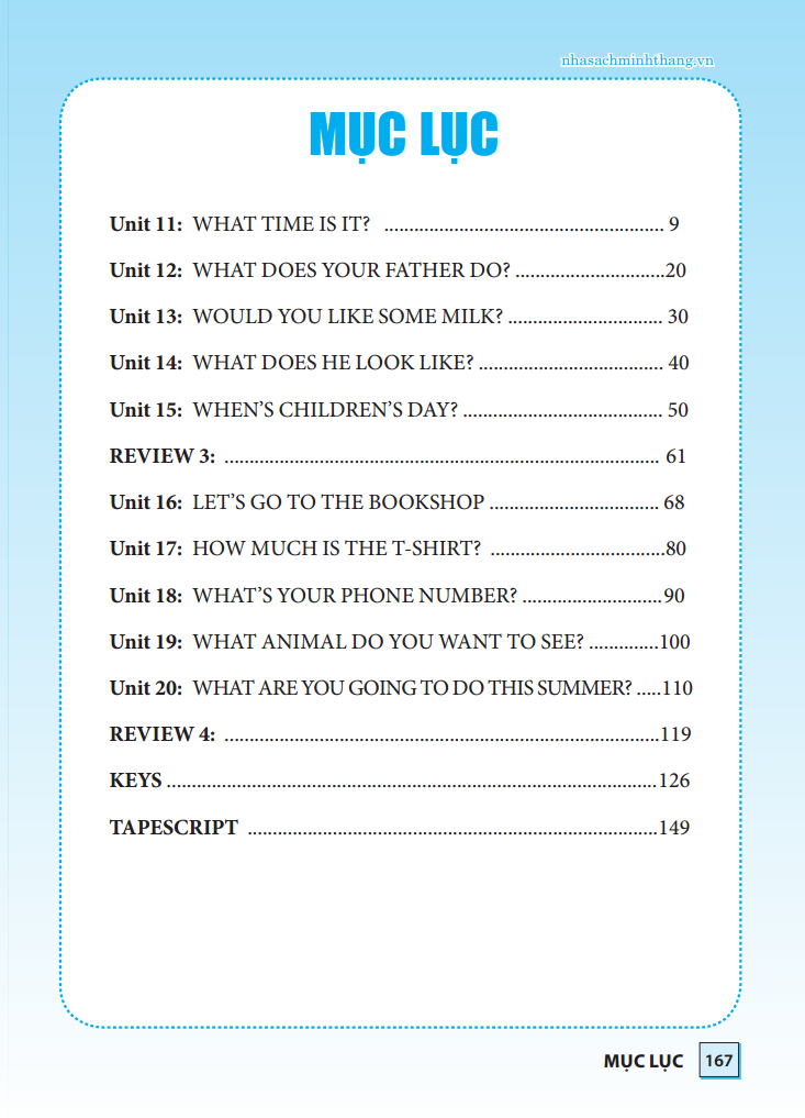 Kết hợp với các nội dung trong sách là đĩa CD với phát âm chuẩn tiếng Anh của người bản ngữ. Chúng tôi tin rằng CD này sẽ hỗ trợ các em rất nhiều trong quá trình rèn luyện kỹ năng giao tiếp tiếng Anh của mình.
