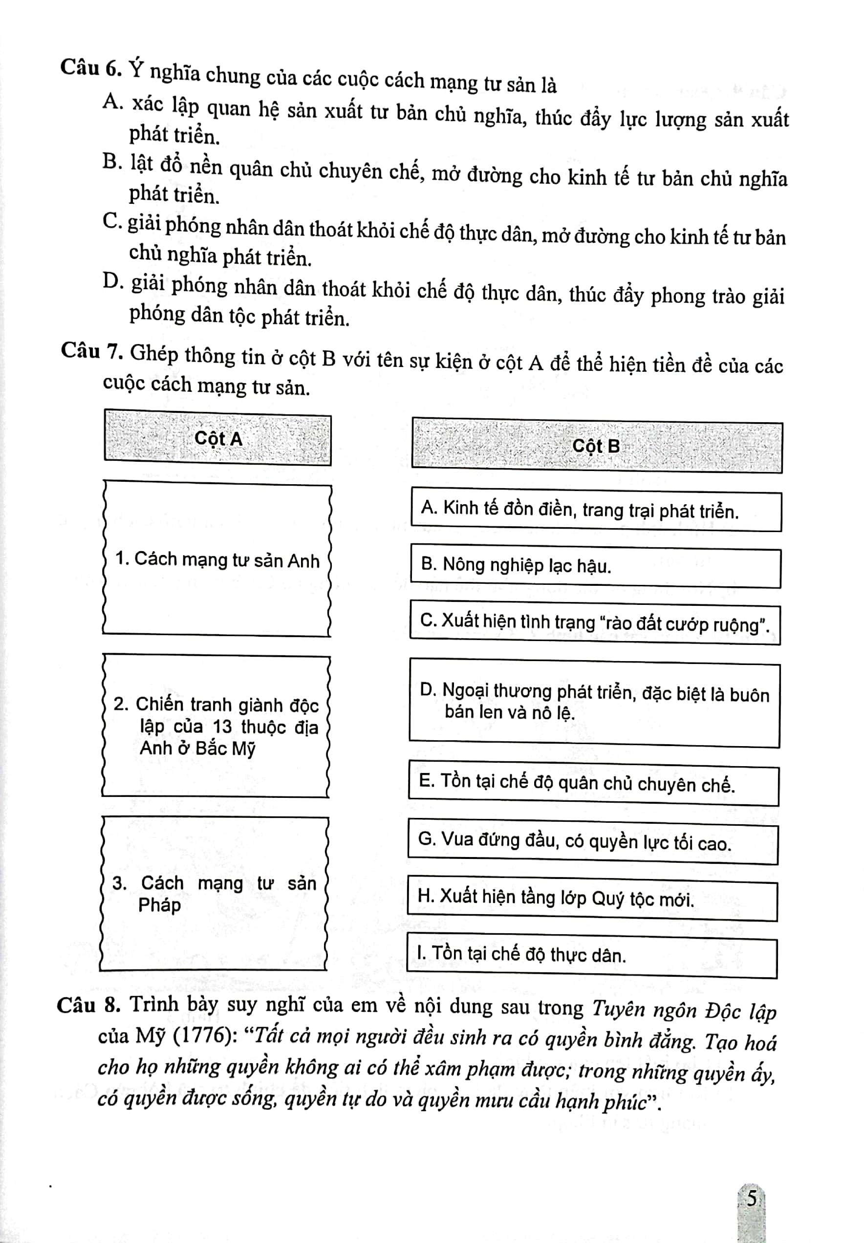 LỊCH SỬ 11 - BÀI 1: MỘT SỐ VẤN ĐỀ CHUNG VỀ CÁCH MẠNG TƯ SẢN | BÀI TẬP TRẮC NGHIỆM