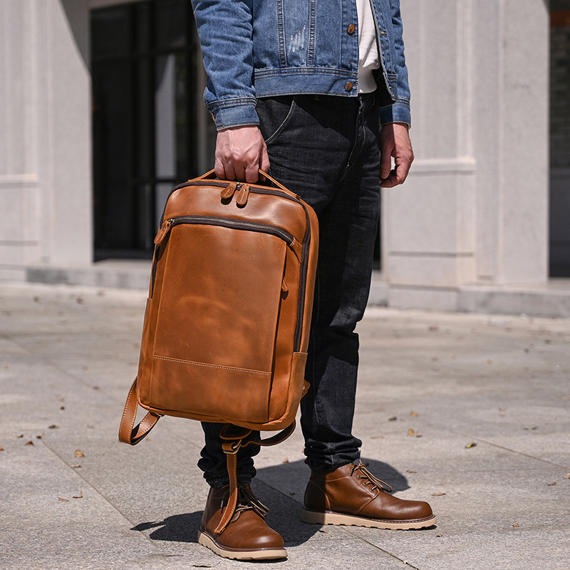 Ba lô nam da bò thật BHM9251 Vừa laptop 13.3inch