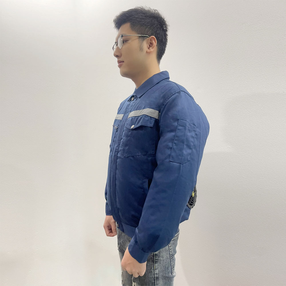 - Áo sử dụng 2 quạt thổi không khí từ ngoài làm mát, giảm nhiệt độ, điều hoà toàn bộ cơ thể.