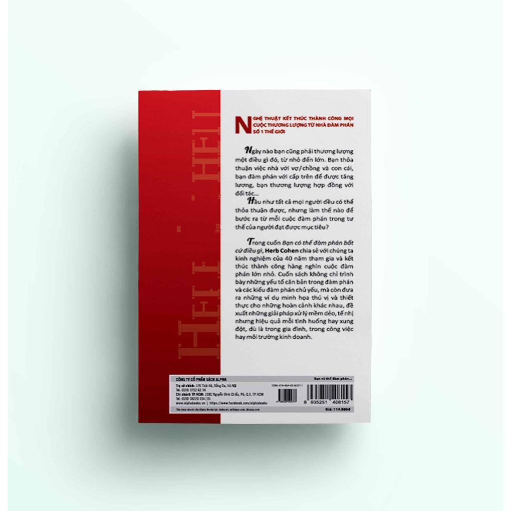 Trong cuốn sách Bạn có thể đám phám bất cứ điều gì, Herb Cohen chia sẻ với chúng ta kinh nghiệm của 40 năm tham gia và kết thúc thành công hàng nghìn cuộc đàm phán lớn nhỏ. Cuốn sách về Đàm phán và Thuyết phục này không chỉ trình bày những yếu tố căn bản trong đàm phán và các kiểu đàm phán chủ yếu, mà còn đưa ra những ví dụ minh hoạ thú vị và thiết thực cho những hoàn cảnh khác nhau, đề xuất những giải pháp xử lý mềm dẻo, tế nhị nhưng hiệu quả mỗi tình huống hay xung đột, dù là trong gia đình (Khi trẻ con khóc đòi quà…), trong cuộc sống hàng ngày (Khi vợ bạn im lặ), trong công việc (Khi xin tăng lương….) hay môi trường kinh doanh (Khi khai thuế lợi tức, khi mua đất…). Vì thế, Bạn có thể đàm phán bất cứ điều gì đã trở thành một trong những cuốn sách bán chạy nhất tại Mỹ hơn 9 tháng liền, và đã được dịch ra trên 20 thứ tiếng.
