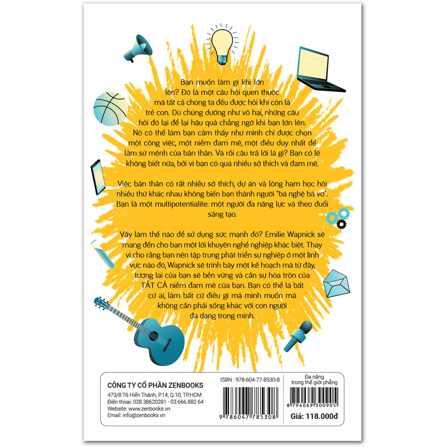 Vậy làm thế nào để sử dụng sức mạnh đó? Emilie Wapnick sẽ mang đến cho bạn một lời khuyên nghề nghiệp khác biệt. Thay vì cho rằng bạn nên tập trung phát triển sự nghiệp ở một lĩnh vực nào đó, Wapnick sẽ trình bày một kế hoạch mà từ đây, tương lai của bạn sẽ bền vững và cần sự hòa trộn của TẤT CẢ niềm đam mê của bạn. Bạn có thể là bất cứ ai, làm bất cứ điều gì mà mình muốn mà không cần phải sống khác với con người đa dạng trong mình.