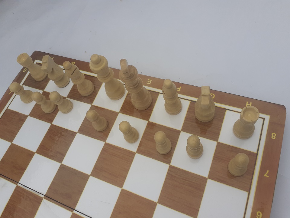 - Khi gấp lại bàn cờ sẽ thành hộp đựng cờ, các quân cờ bằng gỗ được xếp gọn gàng trong hộp.