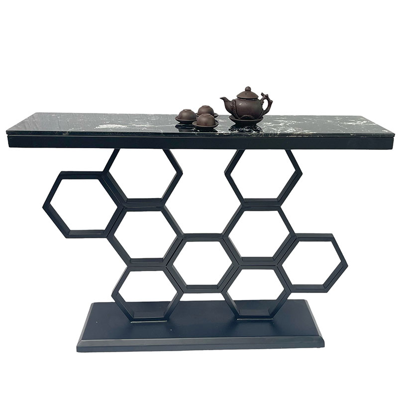 Bàn Console trang trí BEE khung sắt mặt đá CST029 mẫu bàn thiết kế hiện đại hình tổ ong được làm bằng sắt sơn tĩnh điện rất đẹp mắt, gia công tỷ mỉ kết hợp với mặt bàn đá sang trọng với nhiều vân đá lựa chọn. Bàn trang trí Bee rất phù hợp cho các không gian sảnh tiếp khách, không gian phòng khách hay lối đi, có thể kết hợp thêm các bức tranh Decor hay để các chậu bông, đèn trên mặt bàn trang trí rất sang trọng. THÔNG TIN CHI TIẾT SẢN PHẨM :
