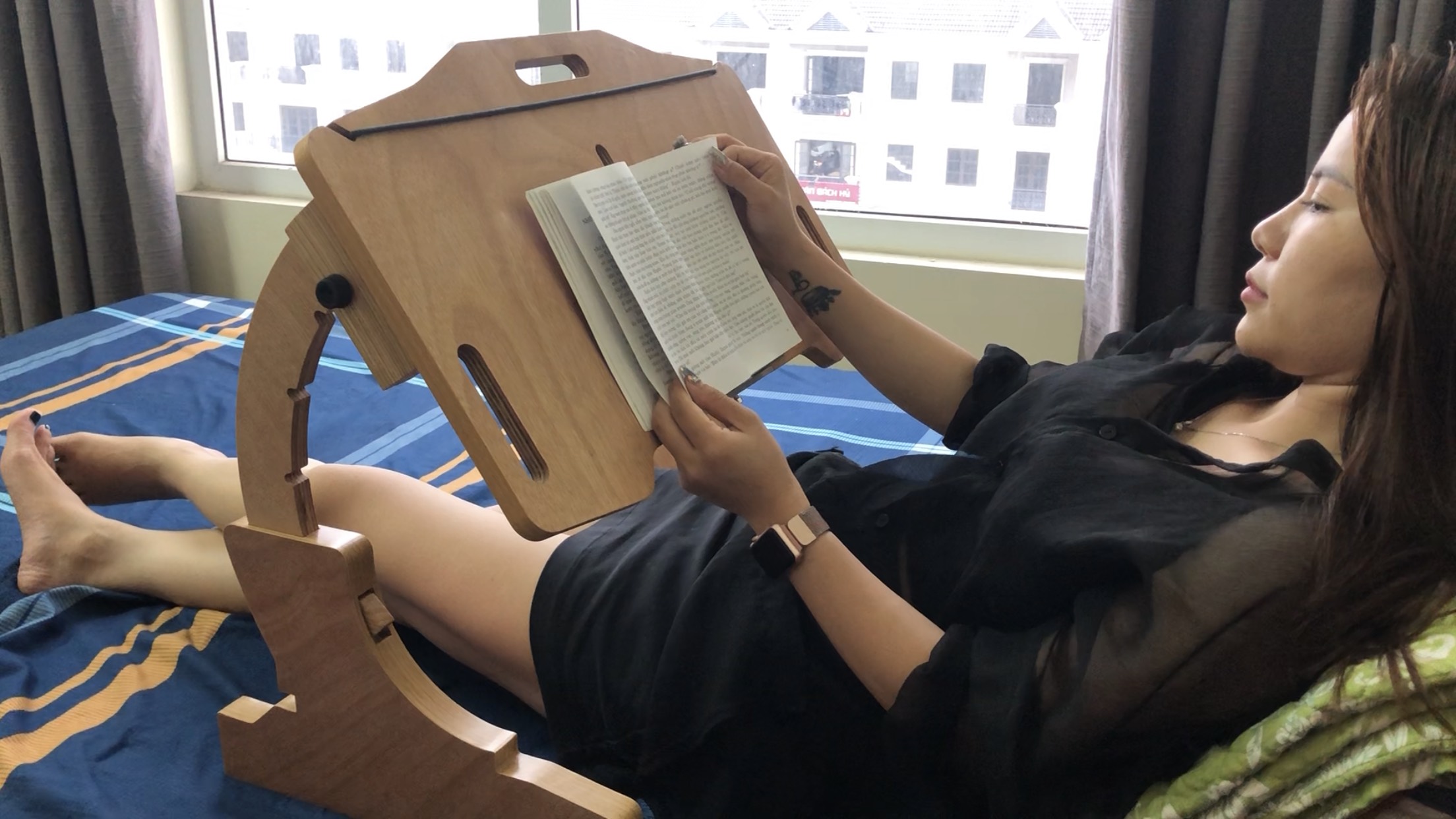 - Mặt bàn xoay 0 độ, 18 độ , 36 độ, 54 độ 72 độ để phù hợp với mục đích bạn sử dụng: Xem phim, học tập,