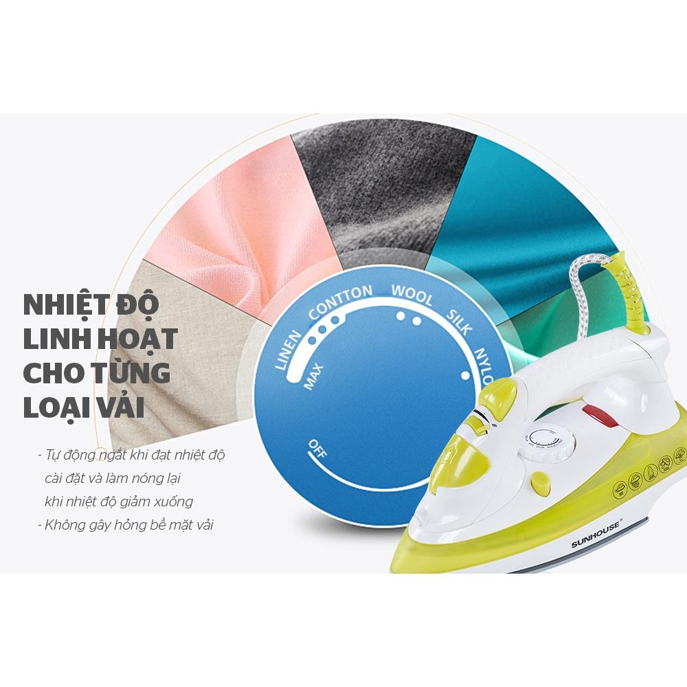 An tâm hoàn toàn khi sử dụng bàn là hơi SUNHOUSE vì được trang bị cảm biến nhiệt an toàn, tự động đóng ngắt khi quá tải nhiệt. Bàn là sẽ tự ngắt khi đạt đến nhiệt độ lý tưởng (phù hợp với các loại vải khác nhau).