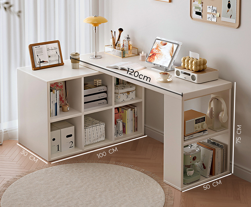 Công năng: Là chiếc bàn làm việc, bàn học vô cùng tiện dụng khi có giá sách đi kèm.