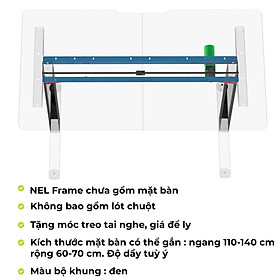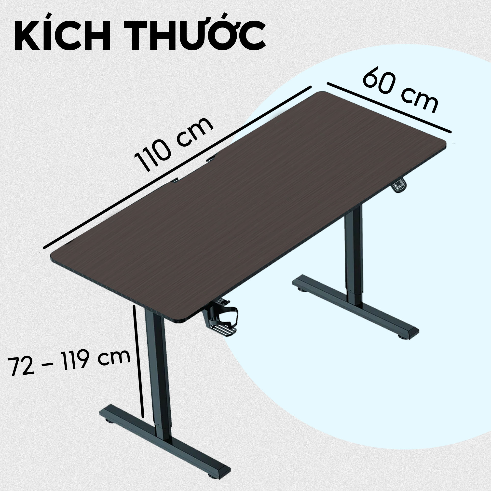 - NEL 1160 -Kích thước mặt bàn 110x60 cm -Khung nâng hạ tối đa 60 kg -Không kèm lót chuột -Mặt bàn liền 1 mảnh màu nâu -Không nhắc đổi vị trí -Tốc độ tối đa 1 cm/s EL05 1460- mẫu bàn bán chạy nhất của iCockpit. Từ tháng 7 2025 đã ra bản nâng cấp SEL 1460