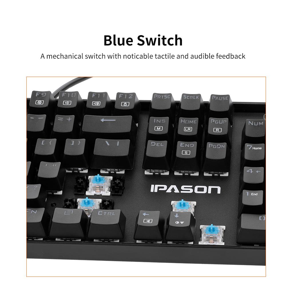 IPASON Mechanical Keyboard is designed for game player. 104 N-key rolloverkey with backlit gives you ultimate game experience. Mechanical blue switchbrings quick response and let you enjoy smooth game playing.