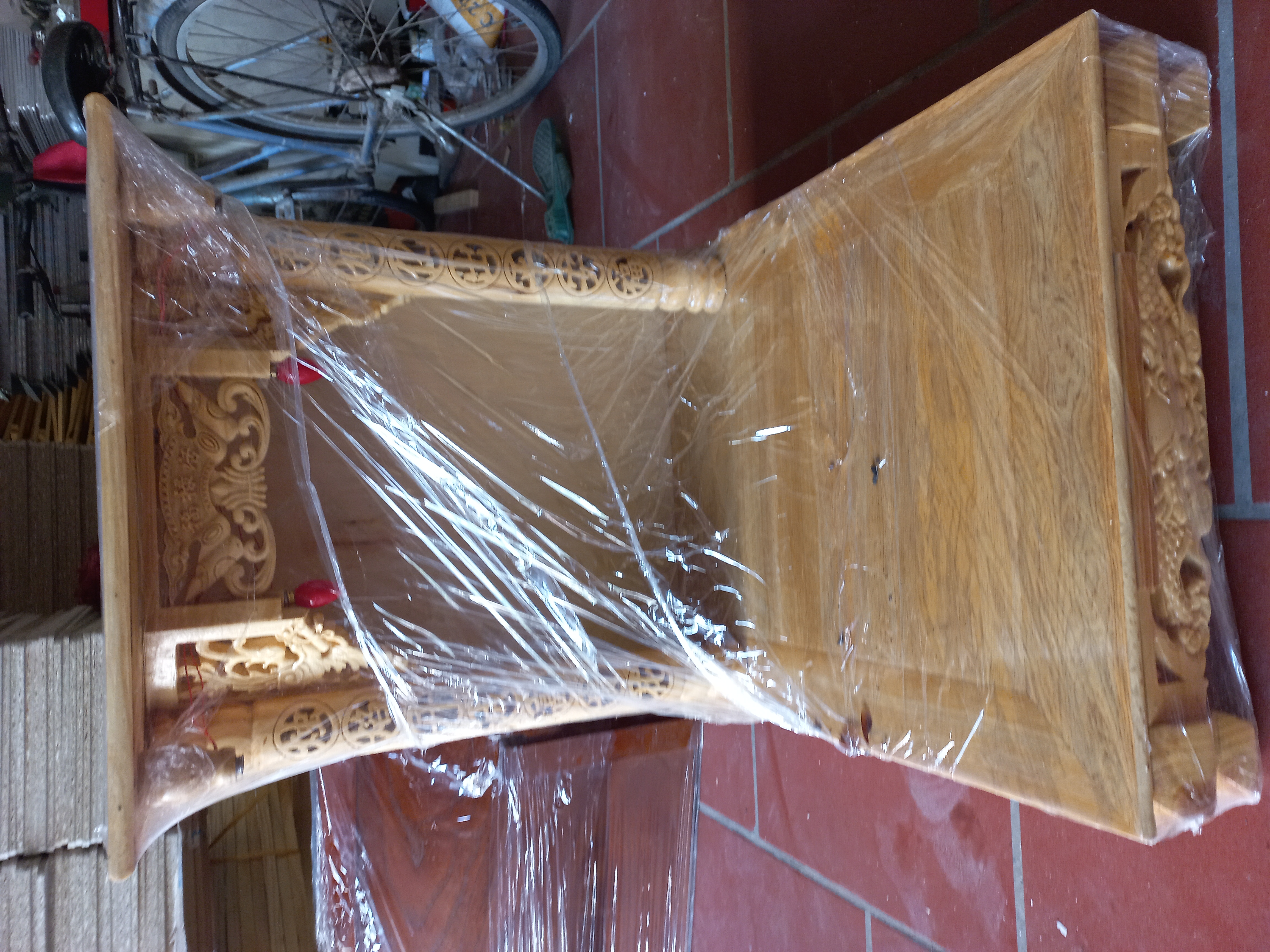 _ Bộ bàn thờ chung cư được làm bằng chất liệu gỗ sồi nga tự nhiên 100% _ Kích thước bàn thờ 89×48cm + ám khói 41×61cm khung gỗ sồi cnc chắn bằng mica+ chữ