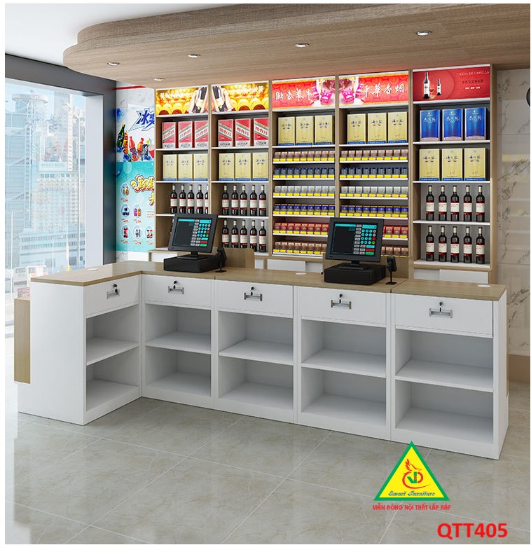 6. Tối ưu hóa quy trình giao dịch: Kết hợp bàn tính tiền và quầy trưng bày giúp rút ngắn quãng đường di chuyển từ việc chọn sản phẩm đến thanh toán, từ đó làm giảm thời gian xếp hàng và tăng tốc độ giao dịch.