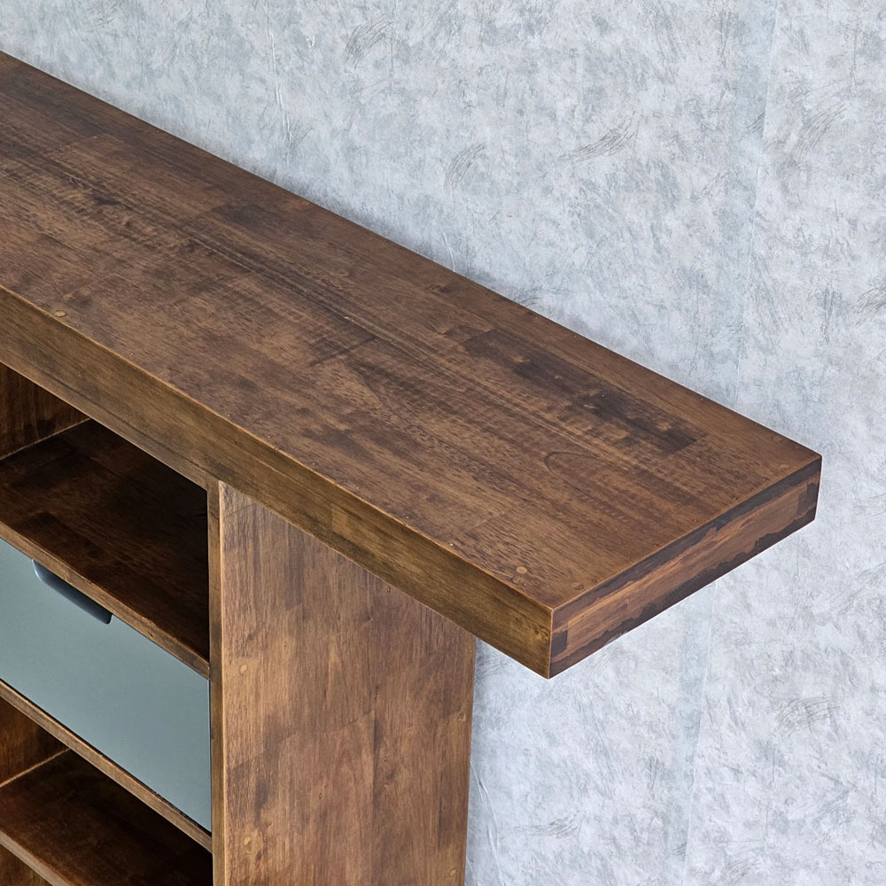 Bàn trang trí gỗ CSTCT063 sở hữu kiểu dáng mạnh mẽ với phần mặt gỗ ghép hộp dày 5cm mang đến sự chắc chắn, cứng cáp cho sản phẩm. Với thiết kế 3 tầng kết hợp hộc kéo ở phần giữa bàn giúp bạn tăng không gian trưng bày và lưu trữ các món đồ yêu thích một cách dễ dàng. Gỗ cao su tự nhiên sơn màu góc chó cực đẹp mắt, hoặc bạn có thể yêu cầu màu sắc theo bảng màu HomeOffice. THÔNG TIN CHI TIẾT SẢN PHẨM :